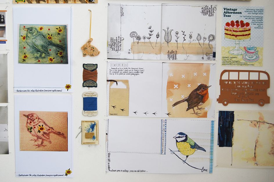 "Since acquiring the studio I’ve designed flyers for a local business (Vintage afternoon Teas – this can be seen top right of the ‘sketchbook page inspiration wall’), designed a postcard for French Knots Craft Studio and I’m about to design their new logo. I’m currently making laser cut Perspex trophies for a local charity’s Fun Run (The Joshua Tree in Northwich) and I’ve been approached by a magazine to produce some illustrations for them (fingers crossed). I’m also working on some new ceramic objects."