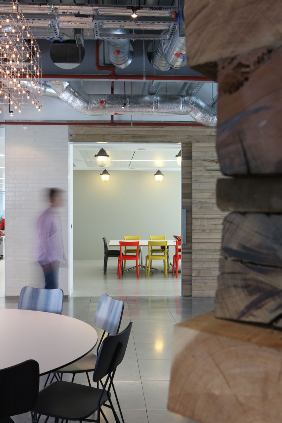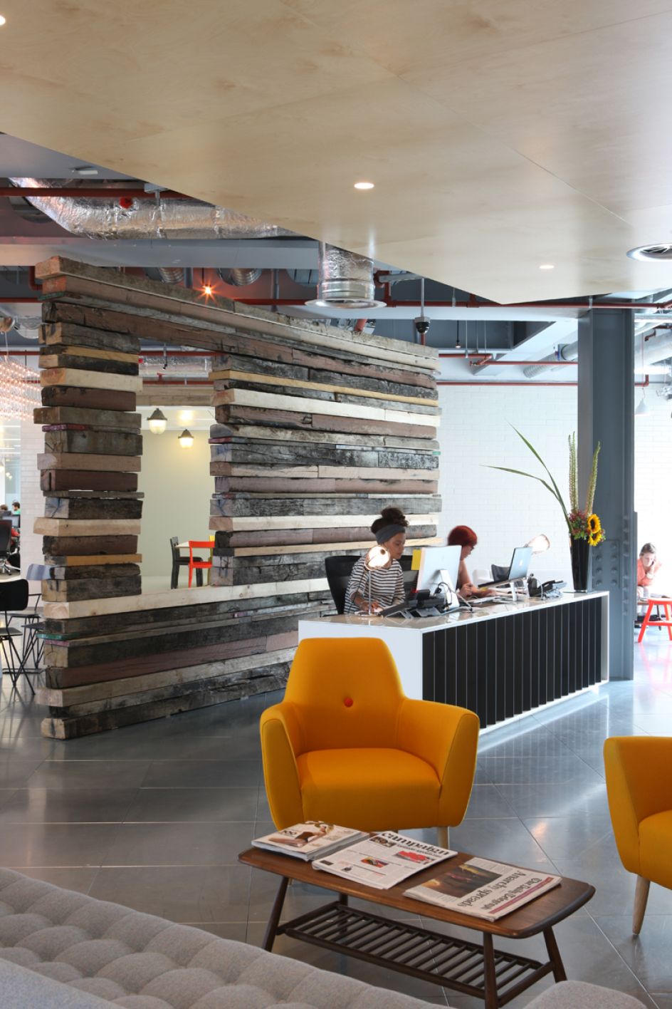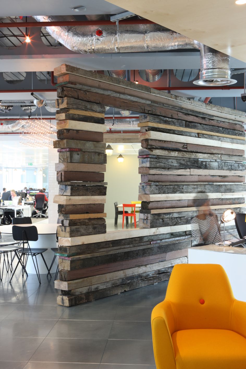 "The agency’s history is all around the office, even ingrained on our meeting room walls! We reused and recovered the sofas and soft furnishings from our old building. There’s some reclaimed railway sleepers on reception that beautifully contrast with the metallic and reflective surfaces throughout the office. We have several ‘idea’ areas, including both cork board and blackboard walls, which we encourage everyone to add to on a daily basis.