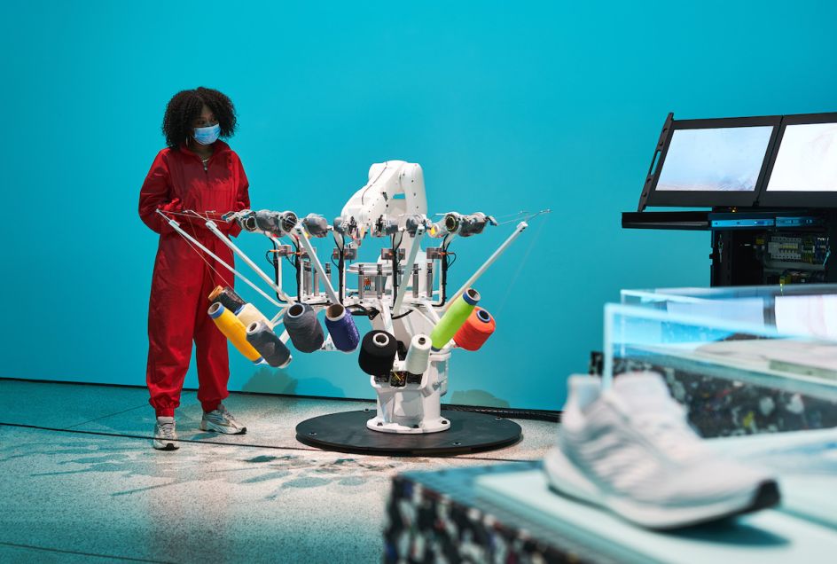 The third space focuses on performance. Designed to suggest the idea of a science lab, the space highlights innovation in speaker design through materials, sketches and design constructions. The final section is dubbed a "green room" and invites visitors to consider the carbon footprint of sneaker production and showcases alternative, more sustainable methods of fabrication.