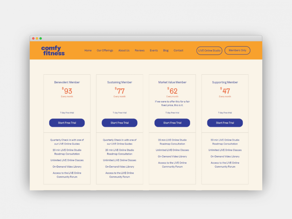 It was a very collaborative project with the women who run Comfy Fitness. They were amazing: very methodical, very patient. Their site has a lot of functionality, which challenged me in many ways, but it's the most rewarding to build and makes me a better designer, thinking more outside the box and strategically.