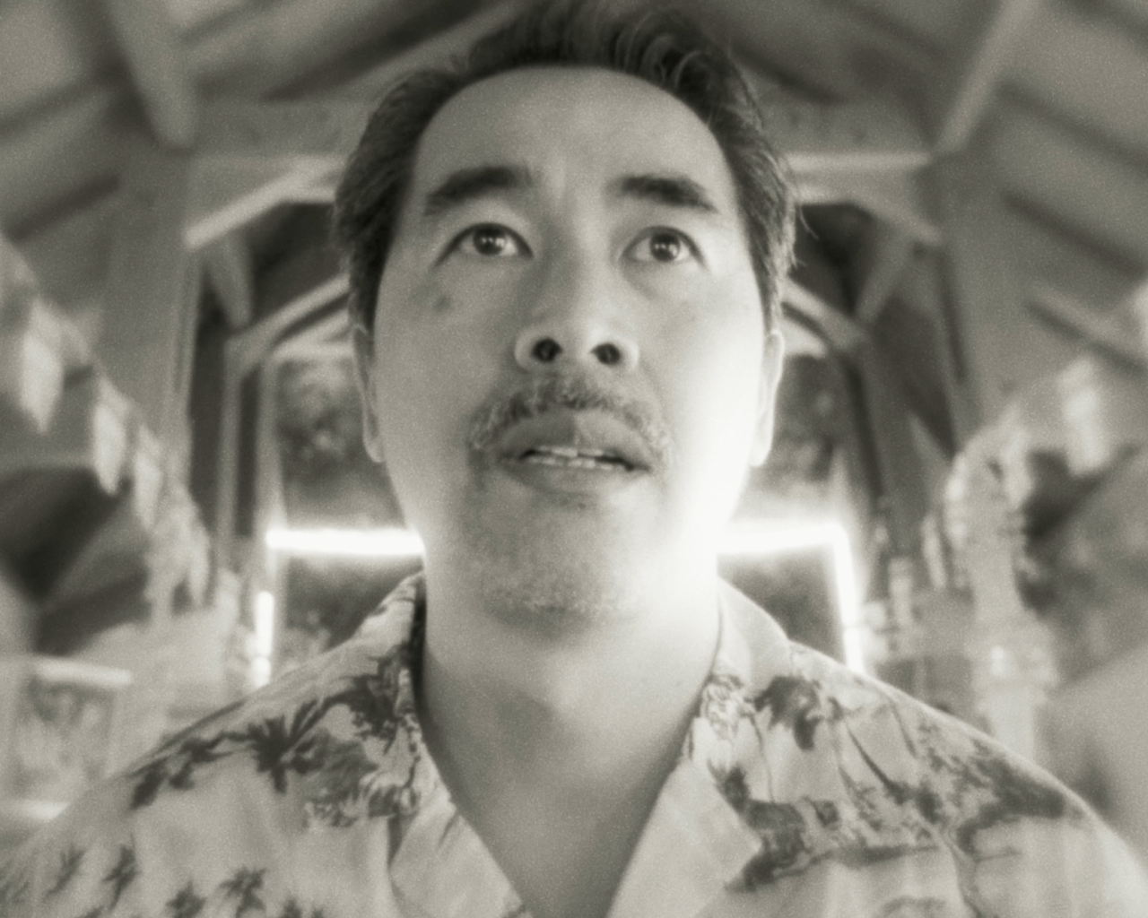 The film's live-action sequences are shot in soft black and white, with Southeast Asian furniture and decorations drifting in and out of focus in the background; the visual residue of a personal history half-known and half-imagined. But to tell the full story, Sanchez needed to go somewhere the camera couldn't reach. Inside the protagonist's inner world, the dream logic and fractured memory are at the heart of the film.