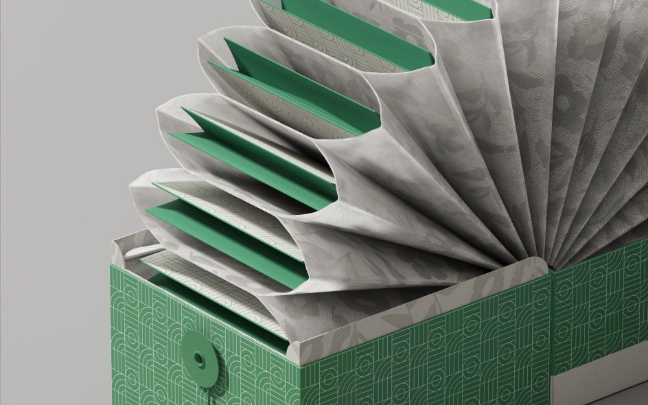 Inspired by tea farms and pop-up books, the packaging opens ceremoniously. Inside, a watertight "porter" pocket holds the tea between steeps, because this particular tea is designed to be infused five times in an hour. The system is complex internally but intuitive externally, creating a ritual object that's much more than a box.