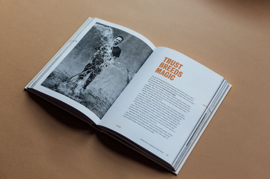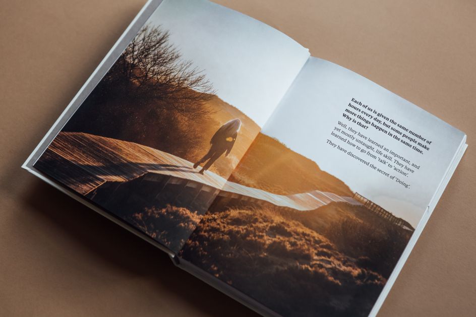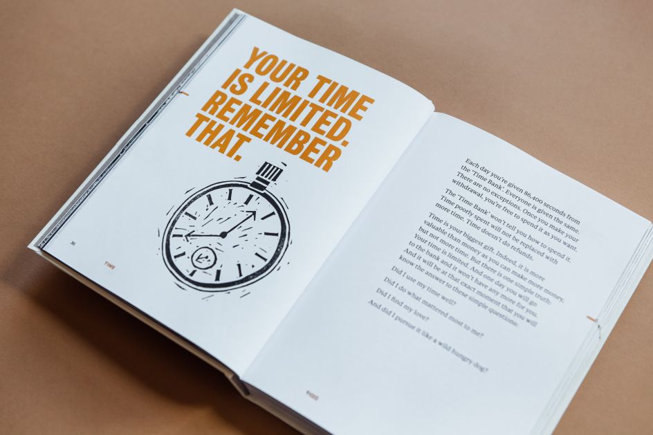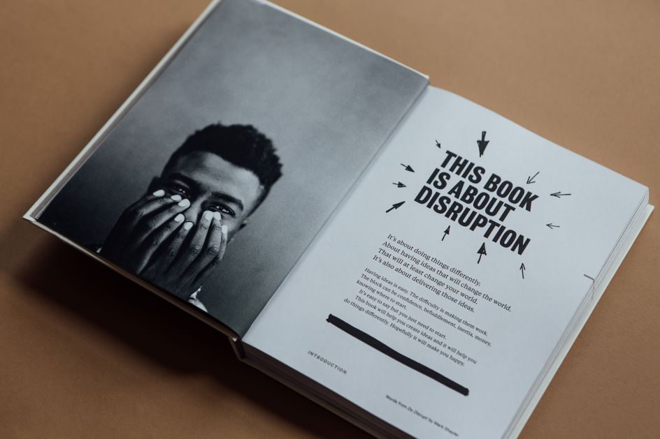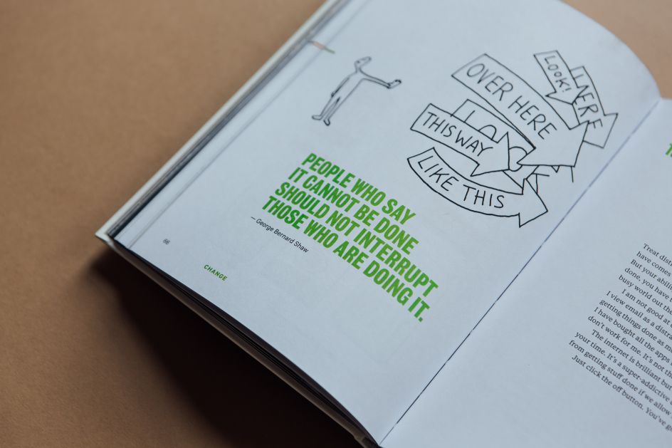 Whenever he designs a Do Book, he says, "I feel my job as a designer is to get out of the way of the reader. I need to make it look good, but I also need to honour the writer by making it enjoyable to read. So I'll pay attention to the words as I go, in terms of how it flows and where it needs to break away. You need to give people a pause to give them time to think. And so I avoid from design that's too reflective of what the words are saying. I prefer to let the words speak for themselves because they are always great."