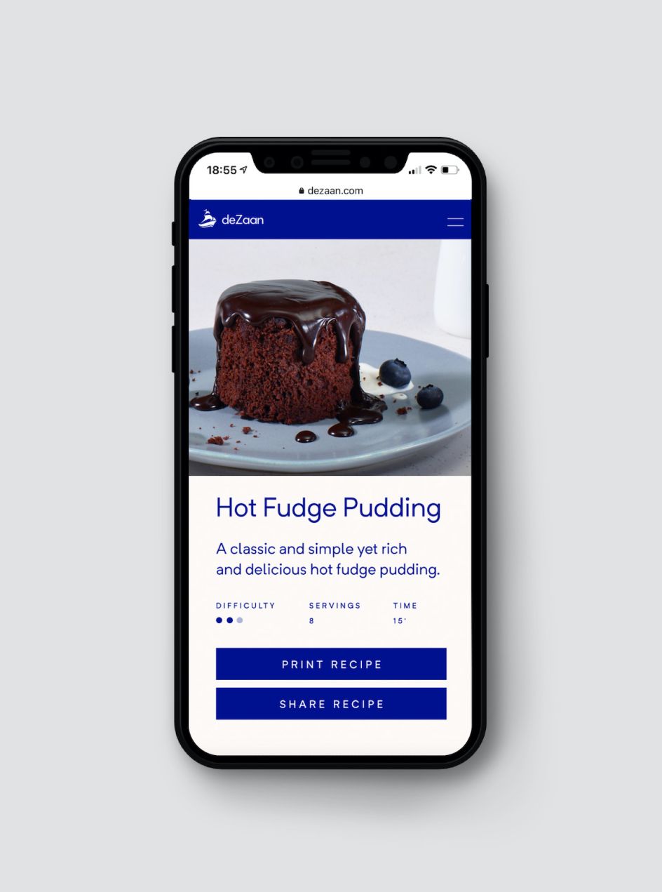 Photographer Angela Moore was commissioned to create the photography for the identity. As well as images that show the cocoa powders in their wet and dry states, Moore also created styled recipe images that are used on the deZaan website.