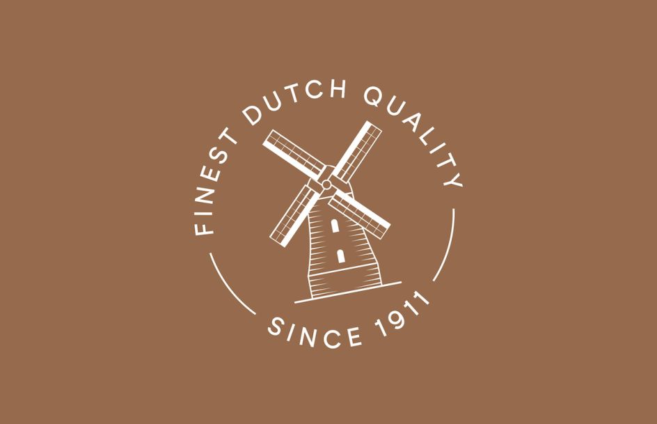 The original logo uses a typographic wordmark and an image of a sailing ship,a refrence to the fact the company was founded in 1911 on the banks of the Zaan River in the Netherlands. The wordmark and symbol were redrawn and modernised, and the team also created a circular "quality stamp" featuring a windmill to signify deZaan’s premium brand status and emphasise its authenticity and Dutch heritage.