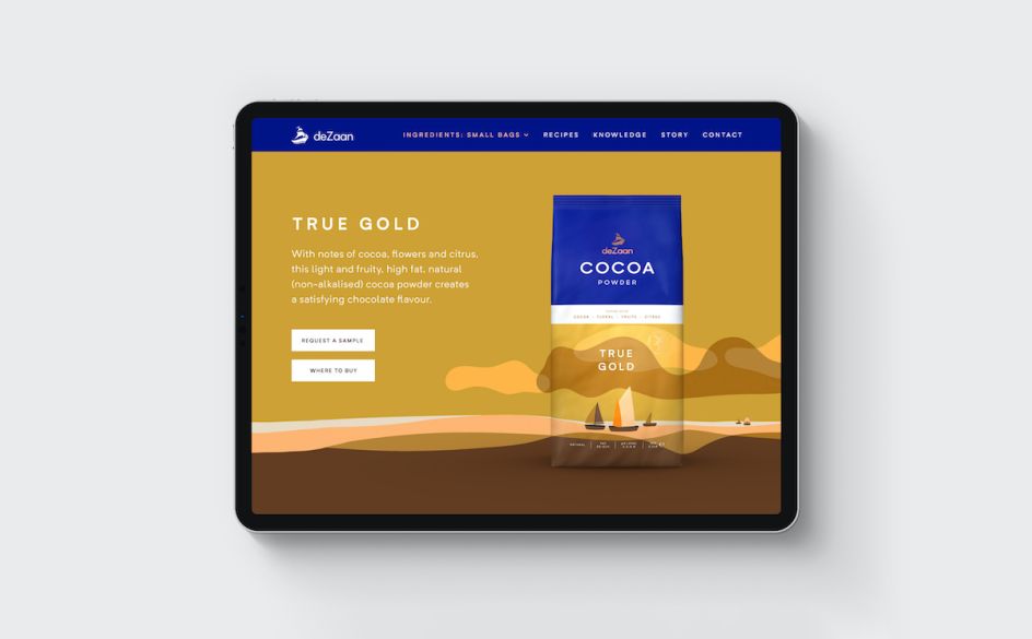 One of the key aspects of the brief was to create a new audience for the cocoa products, aiming to appeal to the likes of bakeries, cafes and hotels; as well as maintaining deZaan's existing trade sales through its distributors and online. The team was commissioned to look at the naming, packaging, labelling, colours, art direction, website design and communication approach for the new products.