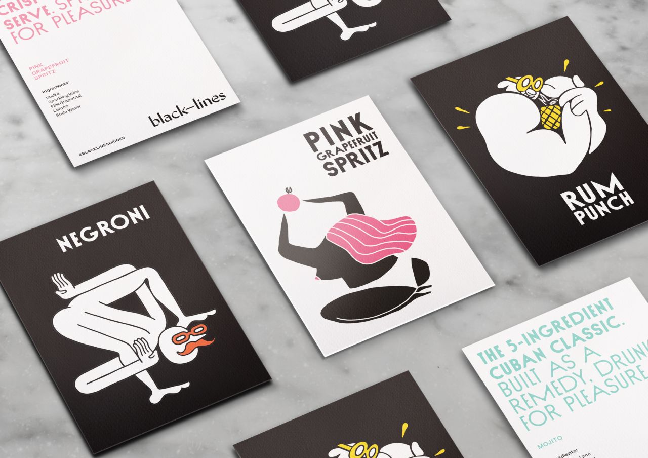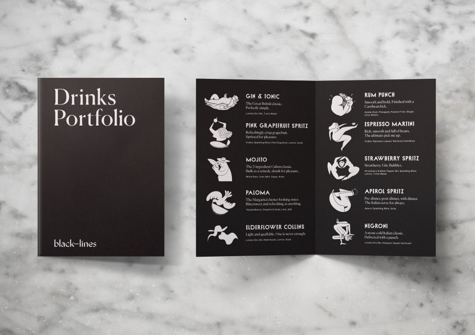 Finished in a modest black and white colour palette, the result is an eye-catching, elegant brand. Rachel adds: "The cocktail industry – once steeped in tradition and ritual – has begun to open up to more innovative serving methods, from canned drinks to unusual food pairings. Black Lines pushes this even further, with premium draught cocktails letting people order an Espresso Martini or Negroni at the bar as fast as a pint.