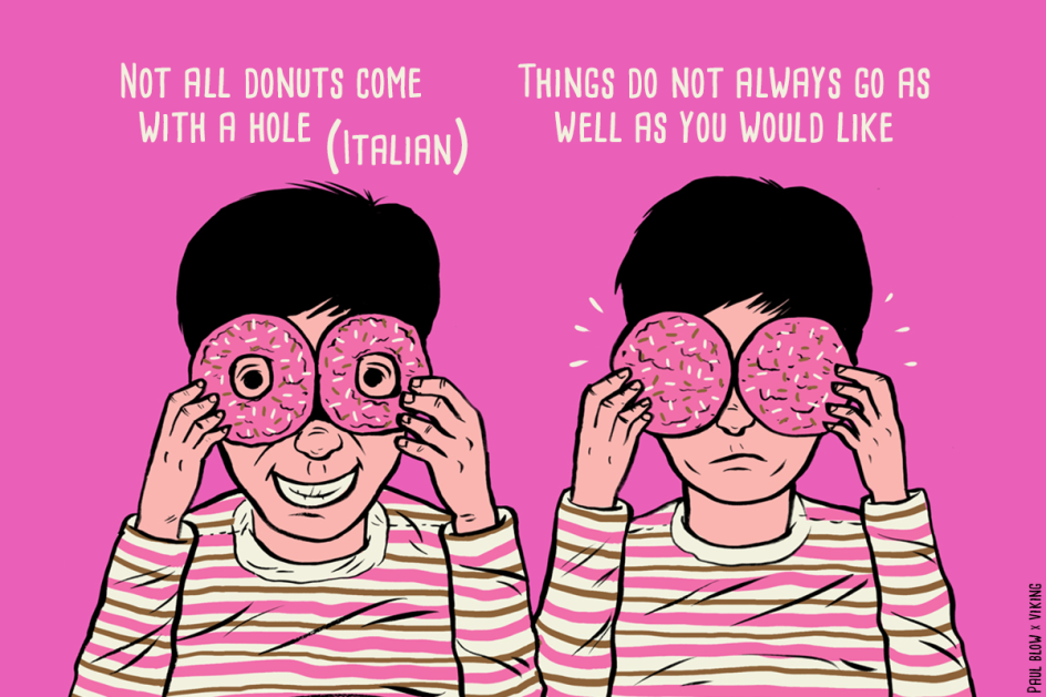 Office supplier Viking decided to delve a little deeper into the subject and teamed up with award-winning British illustrator Paul Blow to uncover the idioms that can get lost in translation, causing misunderstandings between international colleagues and business partners. Creating illustrations for eleven phrases in eleven different languages, the results are surprising and amusing.