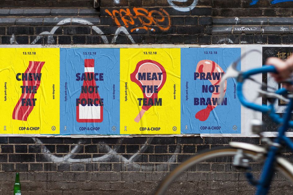 "Sizzle with the squad," reads one of the posters in Carla Zimbler's bold campaign for Cop-a-Chop, a fictional barbeque event with Sydney's police force. The idea is that people can enjoy some food and also talk to officers about raising awareness of and preventing domestic violence in the community. Simple yet hugely effective, the campaign hits the nail on the head in terms of balancing a fun event with a serious issue.