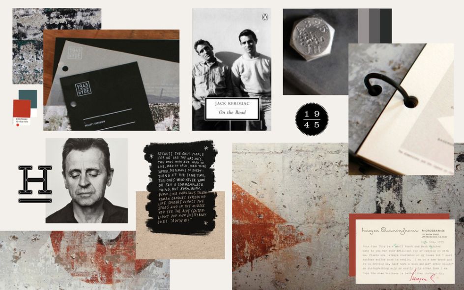 Originally a mechanic’s garage, 1945 Hyde Street was rich with life and visual detail to work from. The iconic cover of Jack Kerouac’s On The Road was shot on the site, and the historic neighbourhood was home to the author among other prominent figures from the past. During the construction process workers (quite literally) dug up some fascinating artefacts from the building’s previous incarnations, all of which contributed ideas to work into the brand design.