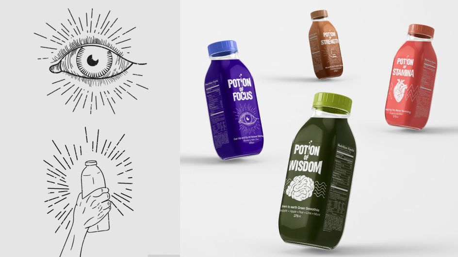 With so many unhealthy drinks on our supermarket shelves, recent Sydney student Timothy Potts decided to come up with an alternative, specifically designed to captivate the eyes and imaginations of preteens. "The packaging aims to inspire healthier life decisions by tapping into the fantasy realms," he explains.