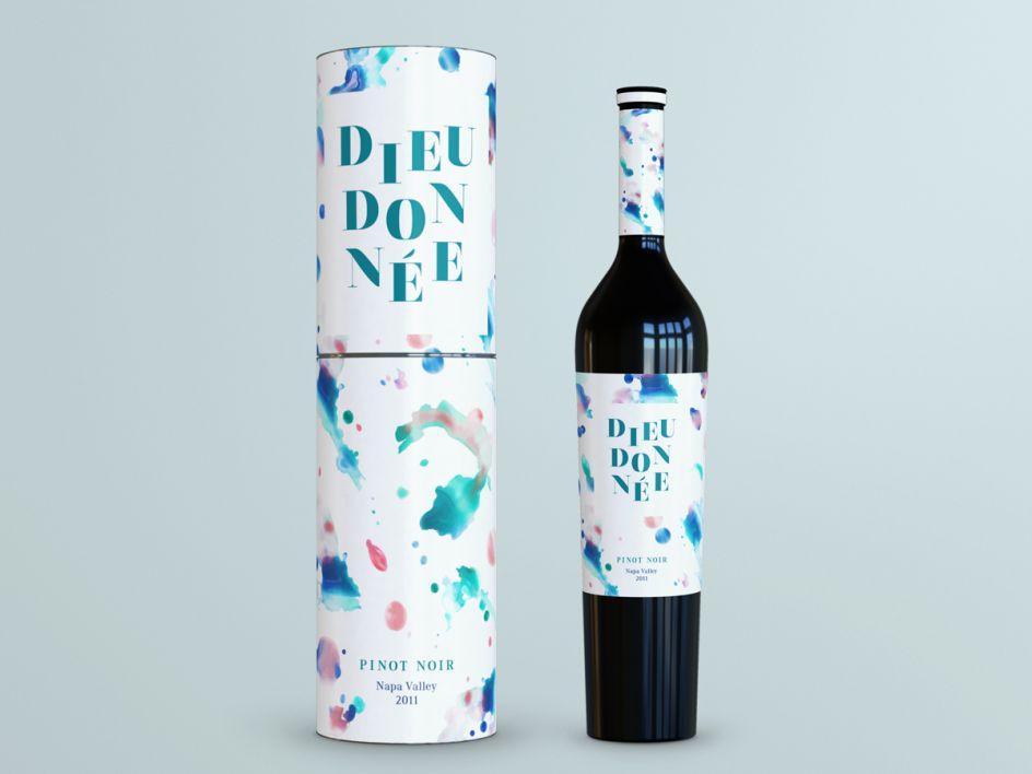 Our New York graduate, Amber Kim created beautiful packaging for a non-existent wine brand named Dieudonnée. Using a large paintbrush and gentle hues of blue, green, red and white, she splashed the colour onto paper to create the backdrop for her labels for the Napa Valley Pinot Noir.