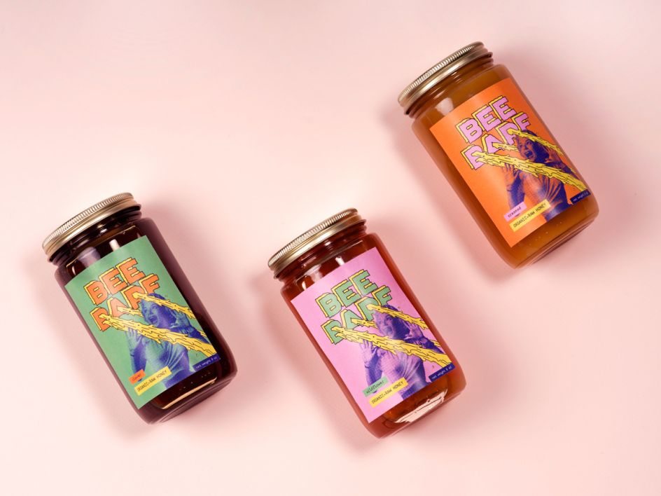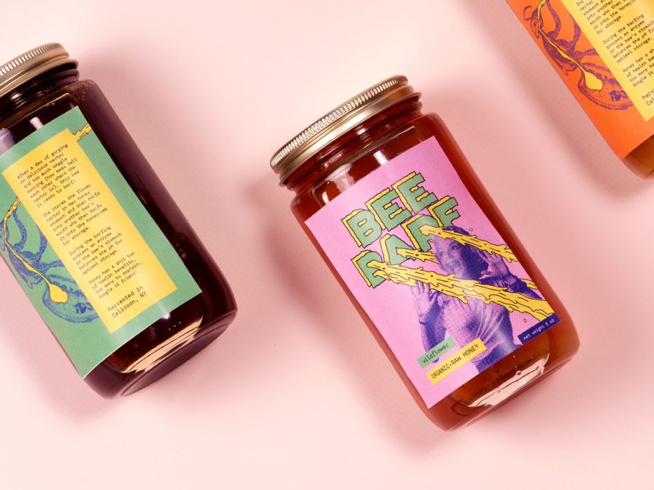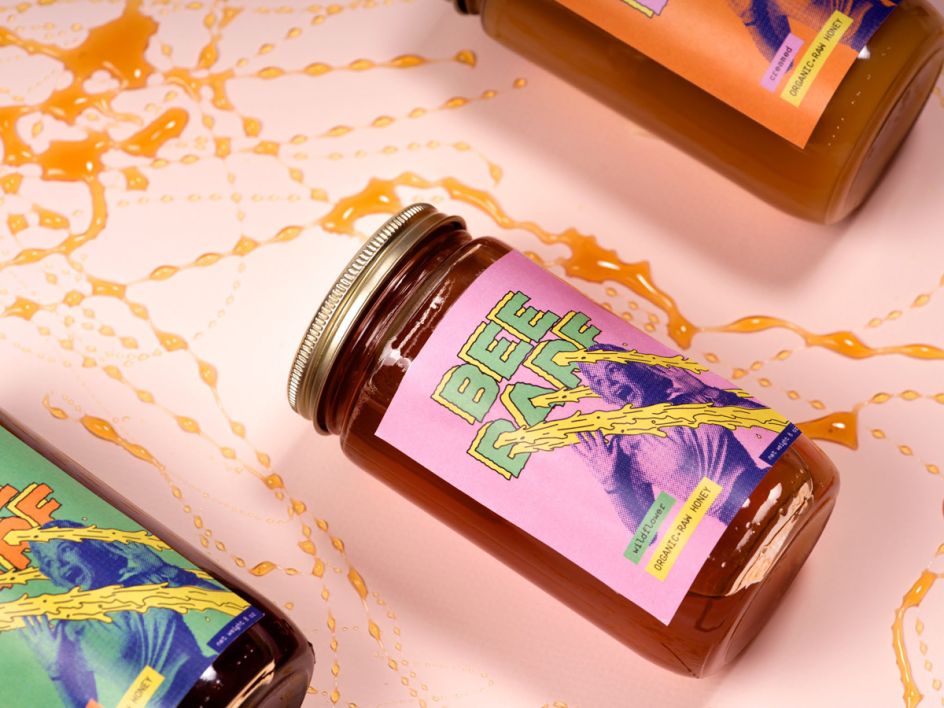 Bee Barf might seem like an unusual choice of words for a honey brand, but it works well for Kathleen Crosby. "I got honey as my product and punks as my demographic. No punk was ever going to go for some quaint, boutique honey, but they might go for a little shock and humour," explains Kathleen. "Looking to the anti-establishment, raw horror-punk of The Cramps, I arrived at vomit as my inspiration."