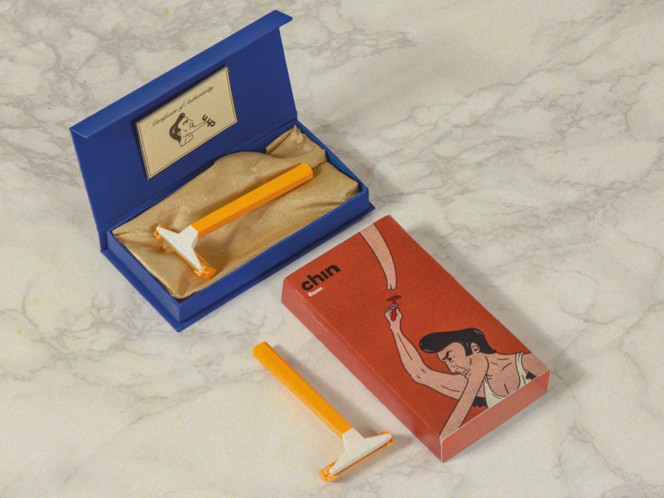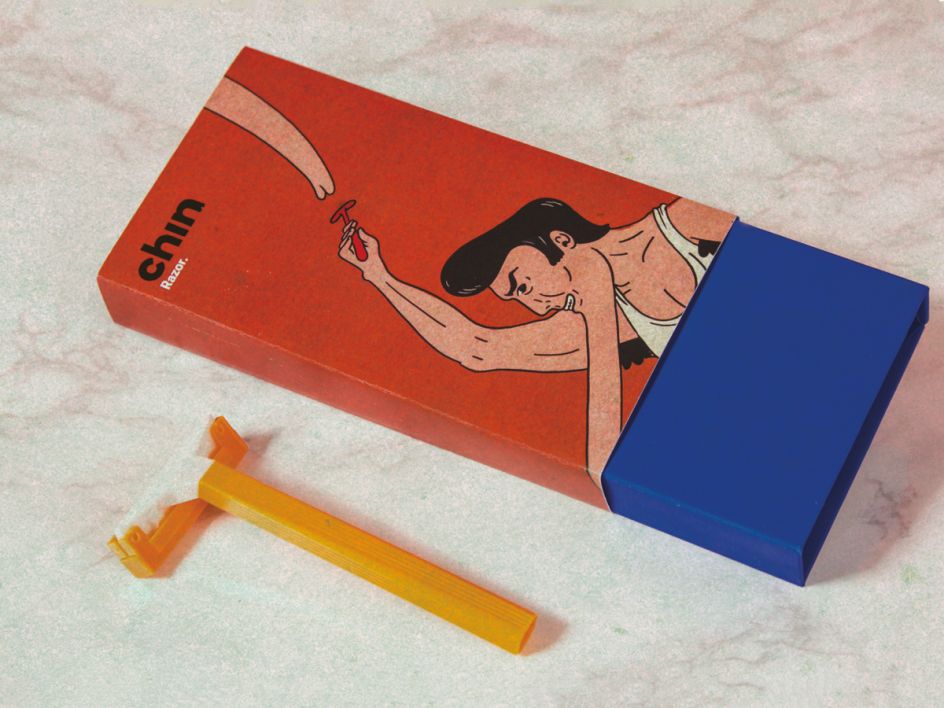 It was a close shave for Christian Schubert who decided to create an identity and packaging for a pretend razer brand. Naming the product "Chin" (which we love), his quirky packaging included the strapline "smooth chin, practical chin" along with illustrations of a male character with an unusually long chin. Brilliant.
