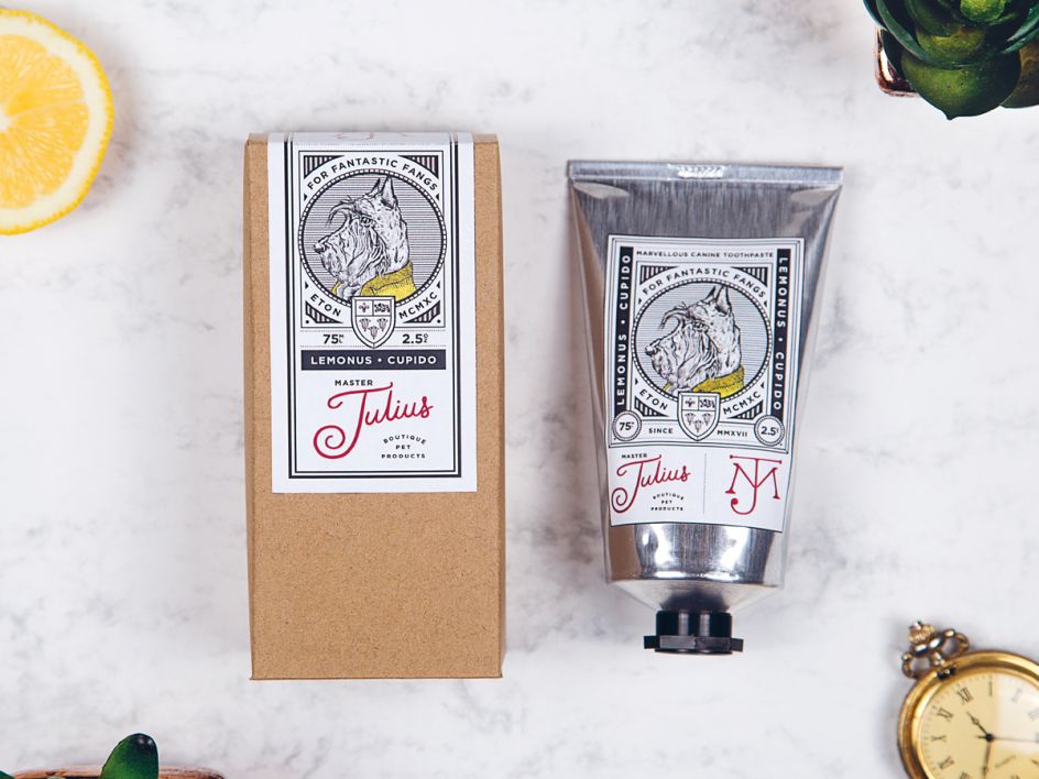 Check out this identity and packaging for a boutique pet product brand targeting a high-end male demographic. "The concept is based on a fictional public school pet dog named Julius," explains Anastasiia Vinnichenko, a recent graduate of our Manchester campus.