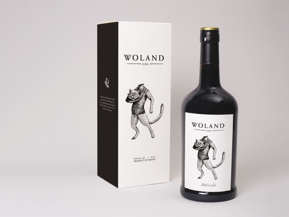 "Woland Gin honours a fictional professor of black magic (his name borrowed one of my favourite Russian novels) who brews his gin. One day, Professor Woland's latest batch of gin transforms him into a giant cat with the ability to never die. He tests his immortality repeatedly in public displays of self-execution and becomes a creature of legend. Woland Gin is said to be made with the same recipe as that which turned him into a giant cat."