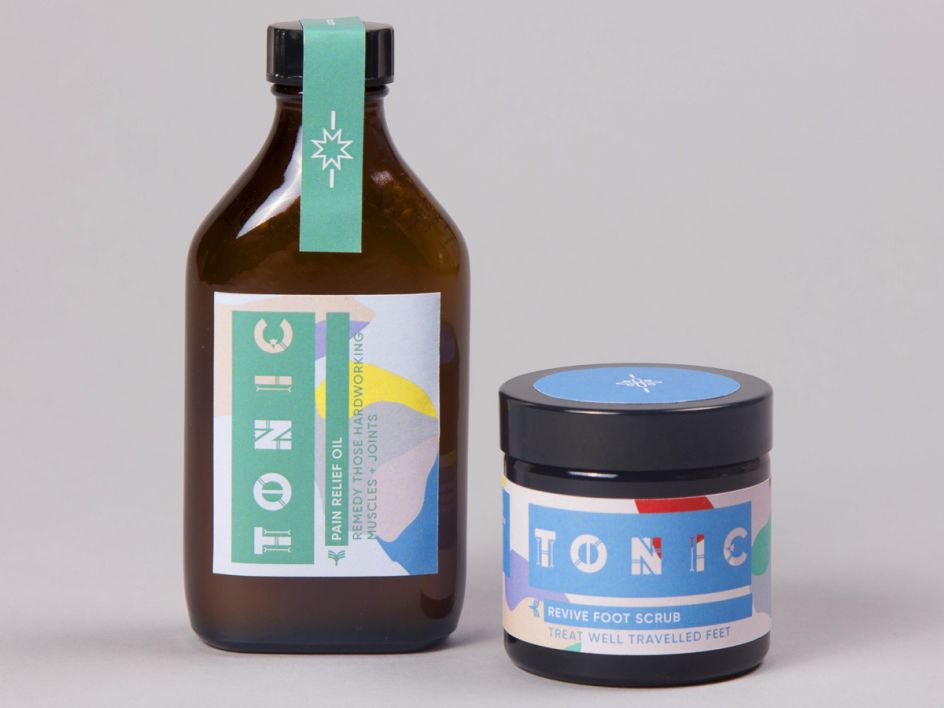 Caitlin Clancy decided to dream up a beauty product called Tonic, something that would help people feel better. We love the Pain Relief Oil, designed to "remedy those hardworking muscles and joints". Colourful and vibrant.