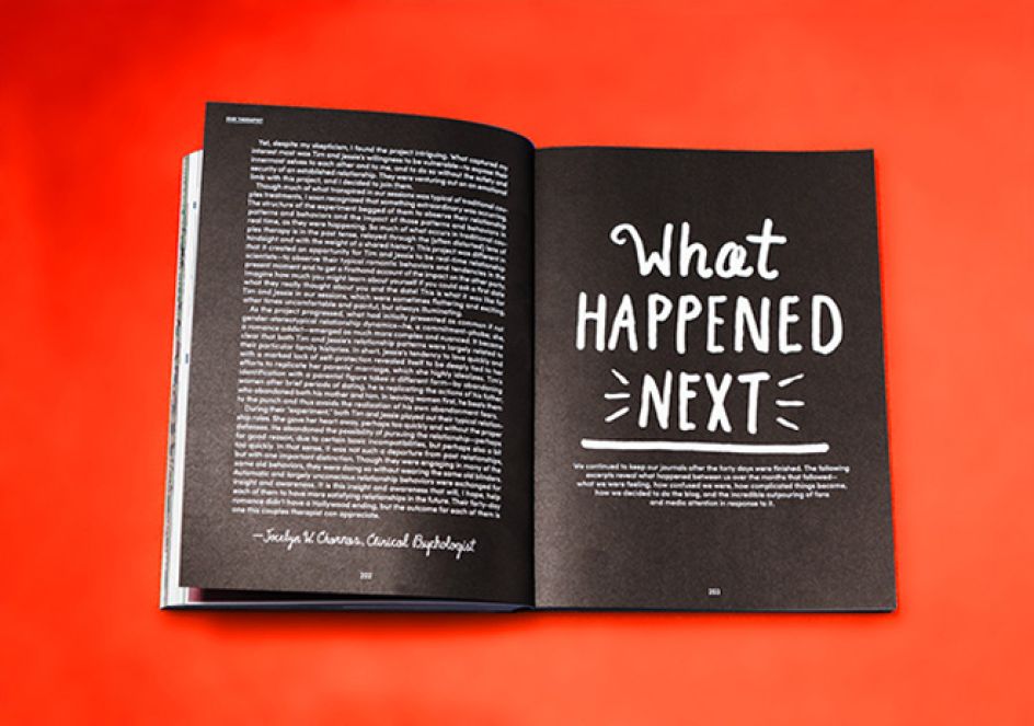It's February and love is in the air. It's also in this book, entitled 40 Days of Dating by New York-based graphic designers and long-time friends Timothy Goodman and Jessica Walsh.