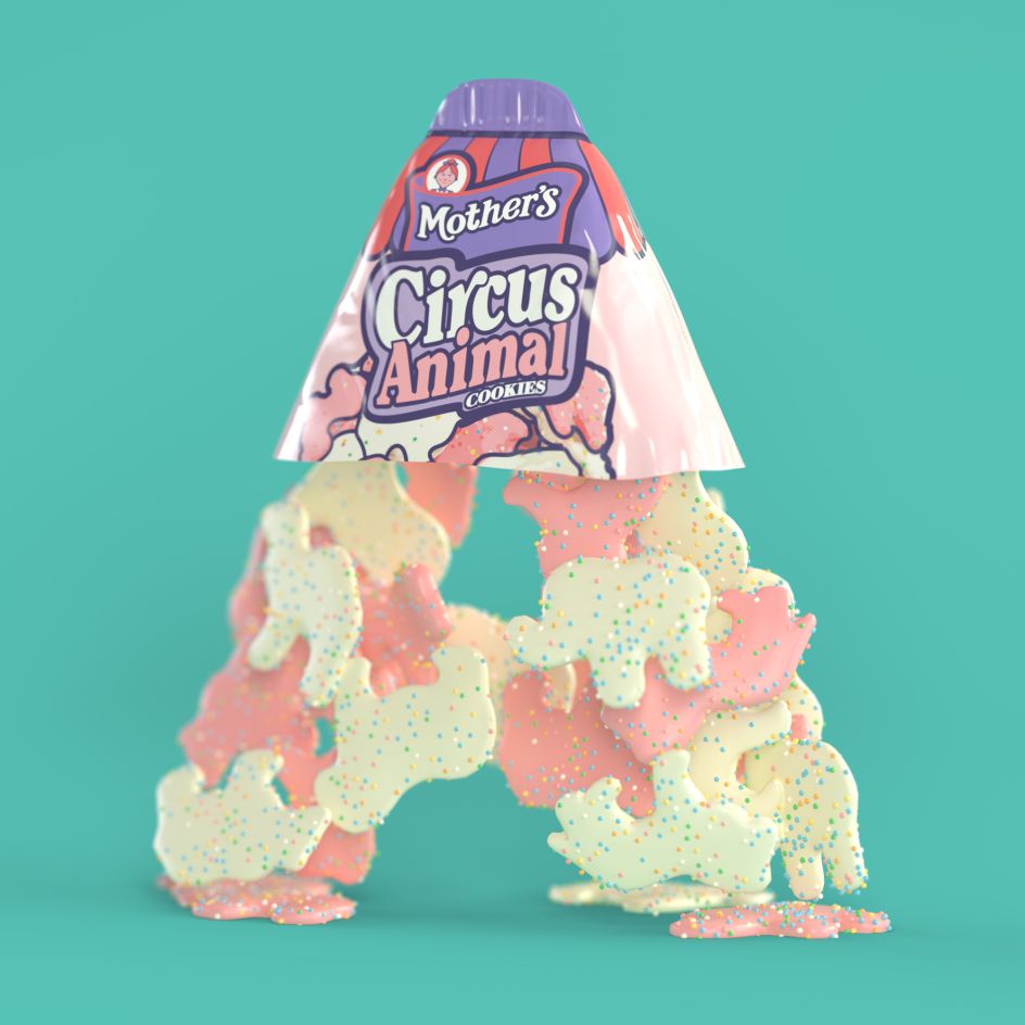 Covering the entire alphabet, it's a trip down memory lane for many and is typical of Camp's style – bright, playful and with a texture you can almost feel. Made for 36 Days of Type earlier this year, the series begins with Animal Cookies for the letter 'A'. "Researching these nostalgic foods has really brought me back to the smells and tastes of my childhood," says Camp. "I discovered Mother's animal cookies a little too late, like after childhood late.