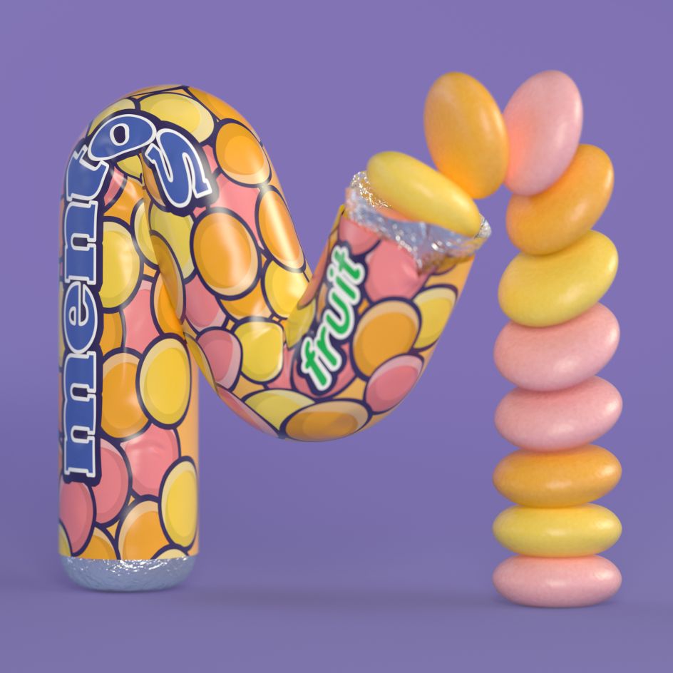Anyone who fondly remembers those sugary treats we enjoyed in the 1990s will love Noah Camp's latest personal project, '90s Nibbles. Bringing back some happy memories, the trans 3D type artist, illustrator and animator has taken favourites like Hubba Bubba and Zebra Cakes, turning them into tasty letters.