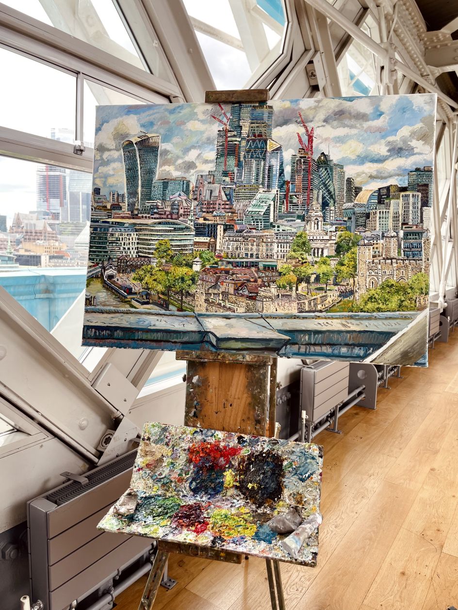 Now, as a tribute to the city's resilience and vibrancy, Tower Bridge has commissioned Melissa Scott-Miller to create a unique work of art. A Bridge with A View sees Melissa take up residence on the Walkways until the end of August, allowing visitors a glimpse into the progress of her painting and a chance to experience the famous panoramic view through the eyes of an artist.