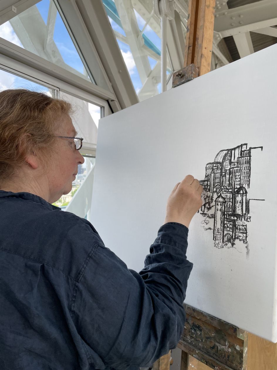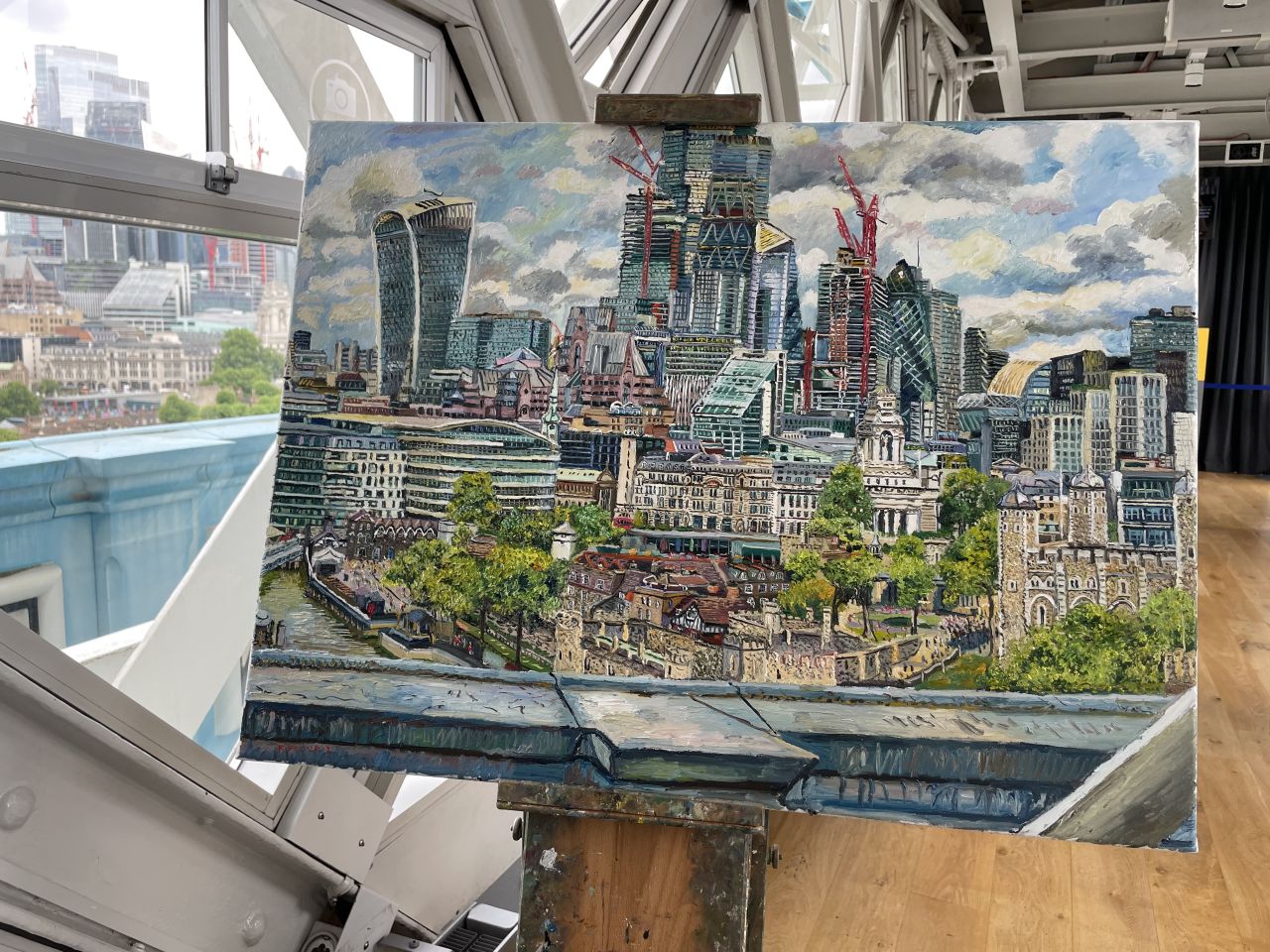 "Painting from Tower Bridge is a fantastic opportunity to tie in both the old and the new architecture and to observe the changing skies and how they reflect on the river, as well as the different kinds of busy life on the river and along the riverbanks. And to see so many landmarks in one view is quite unique!"