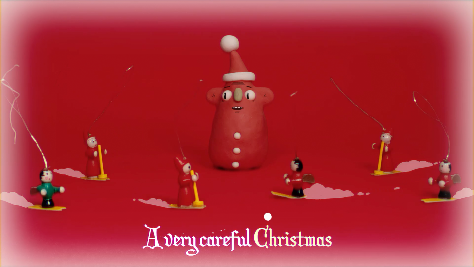 A Careful Christmas is a mix of stop-motion, which Andy shot in his studio in Harrogate, and 2D animation on top, crafted in Photoshop and Procreate then "comped together" in After Effects. "As well as the plasticine character, I raided the Christmas decorations before we put them up in the house for the props – the Rudolf is my dog Peggy's squeaky toy)," adds Andy.