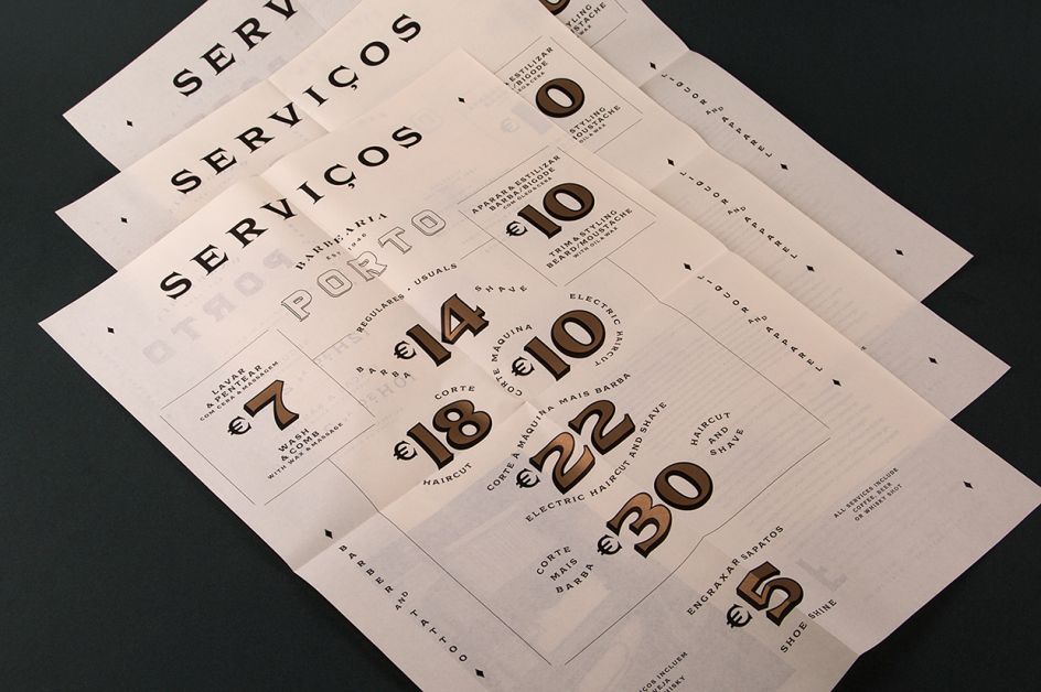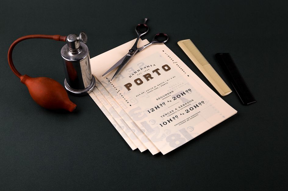 They called upon the talents of local designer Oscar Maia to develop a new brand: "It seemed fundamental that Barbearia Porto's new identity should somehow be based on everything related to vintage, not only by the way in which typography and layout would be used, but also by how the various materials would be produced and finished."