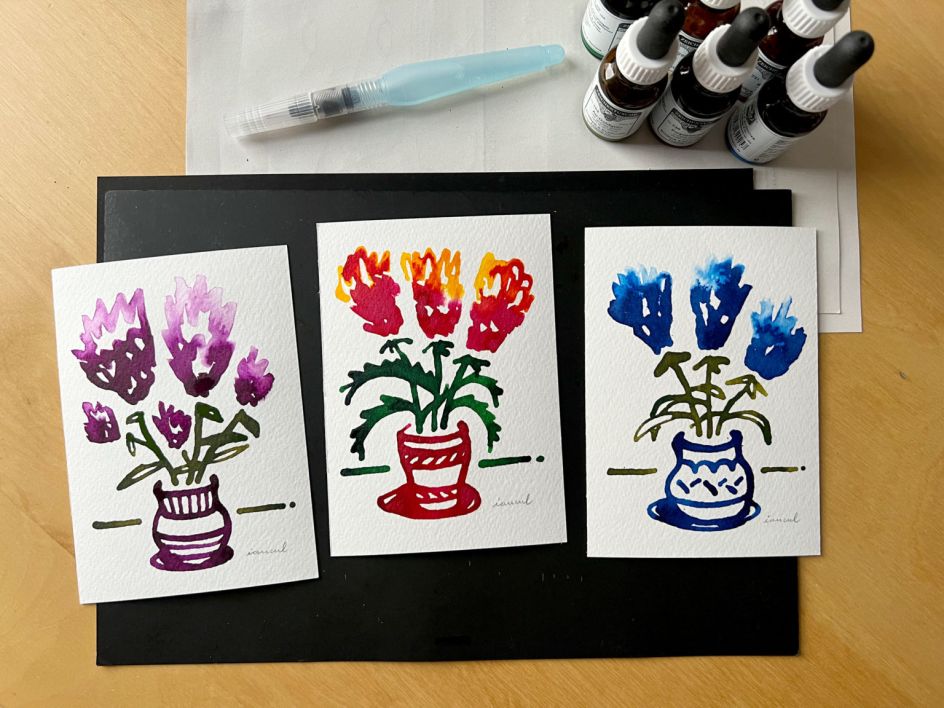 The video is an evolution of a drawing routine Iancu developed during the first lockdown in 2020. "It was a nice way for both of us to start the day with a smile during difficult times," he explains. "The lockdowns eventually ended, but the habit of drawing flowers has stuck. After three years, there were close to 1000 flowers. Series I, drawn with brush pens, and Series II, drawn with ink pipettes."