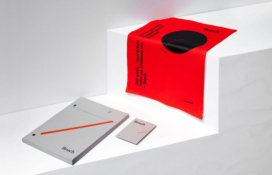 When Austrian graphic design studio Bruch wanted to create its own branding, it decided to take reference from its own name and tagline "Idee&Form" – arranging defined shapes, colour and typography in accordance to an idea and to subtly communicate the somewhat harsh name "Bruch" – which means "rupture" in German.