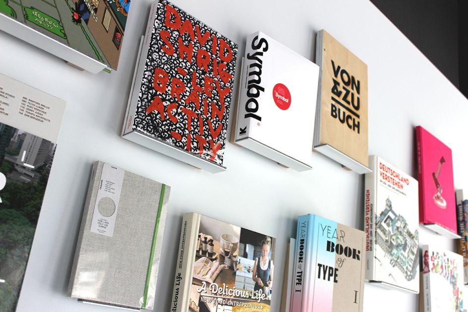 Describing his inspiration, Philipp said: "The retail wall is designed by Atelier VM architects from Innsbruck. Each book is placed on a little shelf that is mounted on the metal wall with magnets. That way the display can be changed now and then and the number of books shown can vary. The white wall reminds me of a gallery wall showing artworks. In this case, books are shown – as precious and beautiful as artworks."