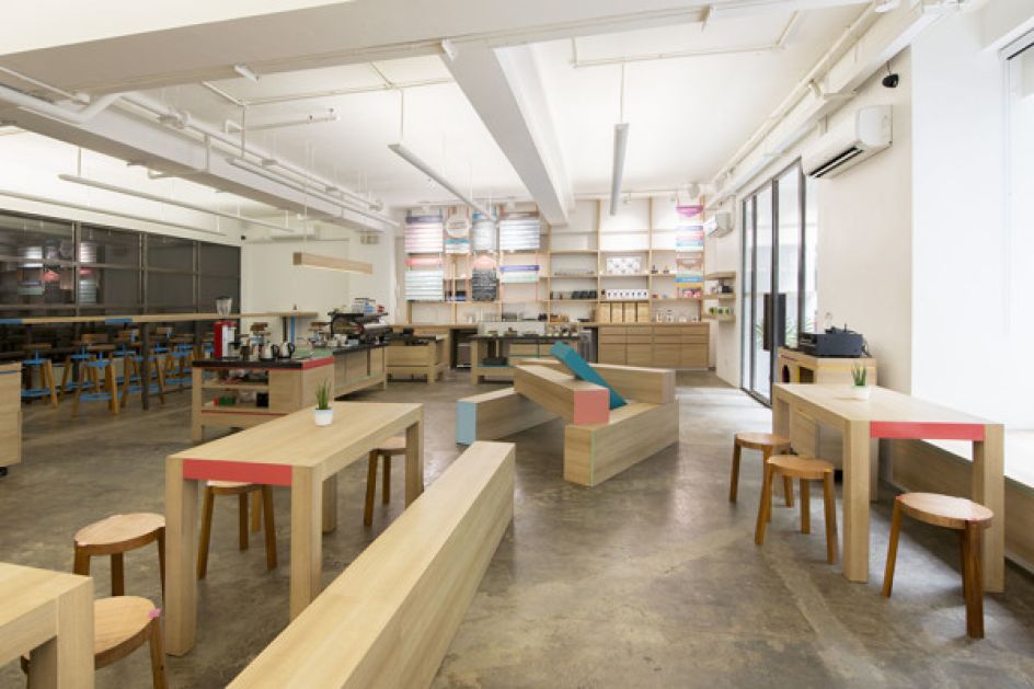 Rather than having a corporate colour, ACRE devised a ‘corporate’ palette where they would have the freedom to mix and match, infusing a sense of playfulness mingled with the seriousness of coffee craft. The project embodies three parts: a cafe, a coffee roastery and a coffee lab.