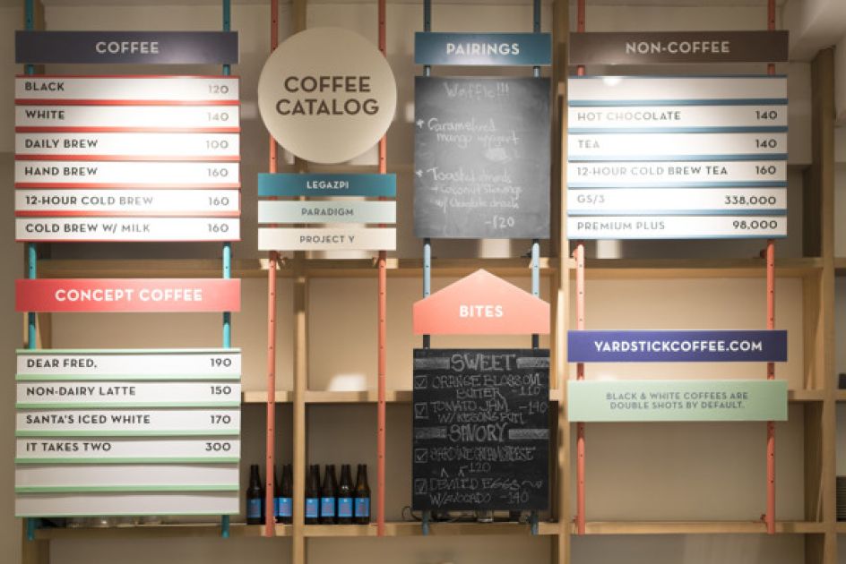 Singapore-based creative agency ACRE created the new identity and interior design for Yardstick, an institution of coffee, aspiring to increase the knowledge and profile of specialty coffee in the Philippines. This inspired the logo, which resembles the national flag of Philippines, but rotated.