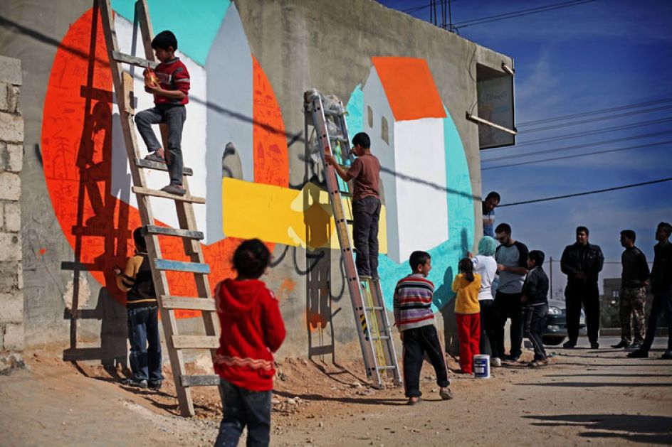 On an unsuspecting, breeze-block building, sat along a dirt path, you can enjoy a colourful painting of two white houses shaking hands, with a banner of Arabic script saying ‘My house is your house’. It's a sentiment that defies local Jordanian-Syrian tension but is designed to at least try and make a difference.