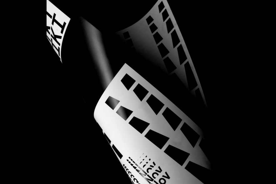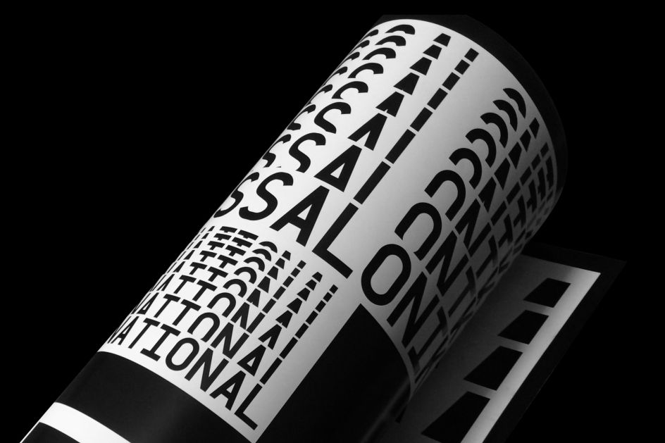 Across applications including event posters and invitations, signage, wayfinding, tickets, catalogues and merchandise, these ideas of repetition become a visually striking and engaging set of touchpoints. Though the overall look and feel is decidedly modern, there's a nod to the golden era of Hollywood and early black and white film's countdowns in the typographic treatment. "The technical monospaced typeface creates a link between classic cinema and technology surrounding it nowadays," explains New York-based Peemoeller.