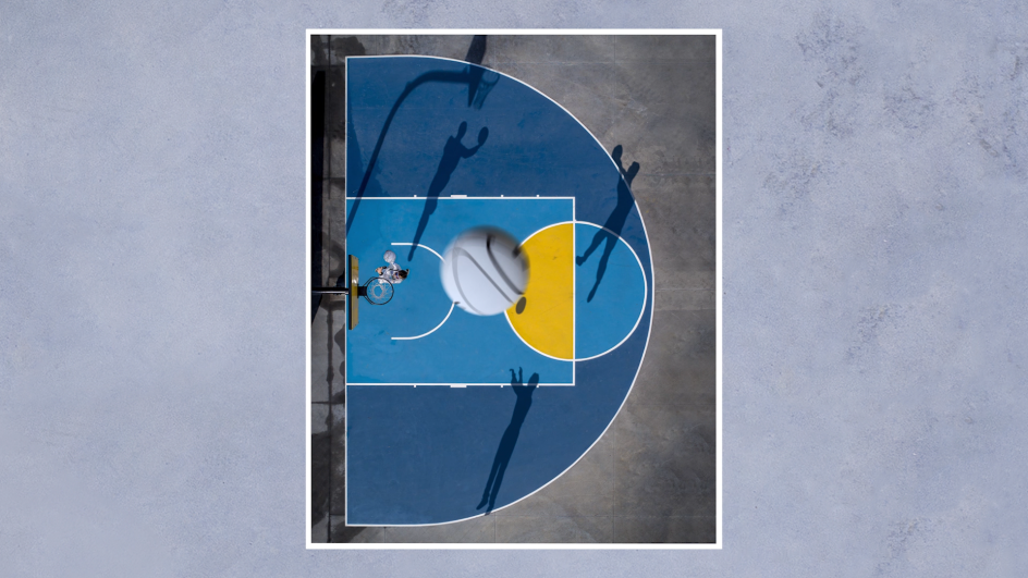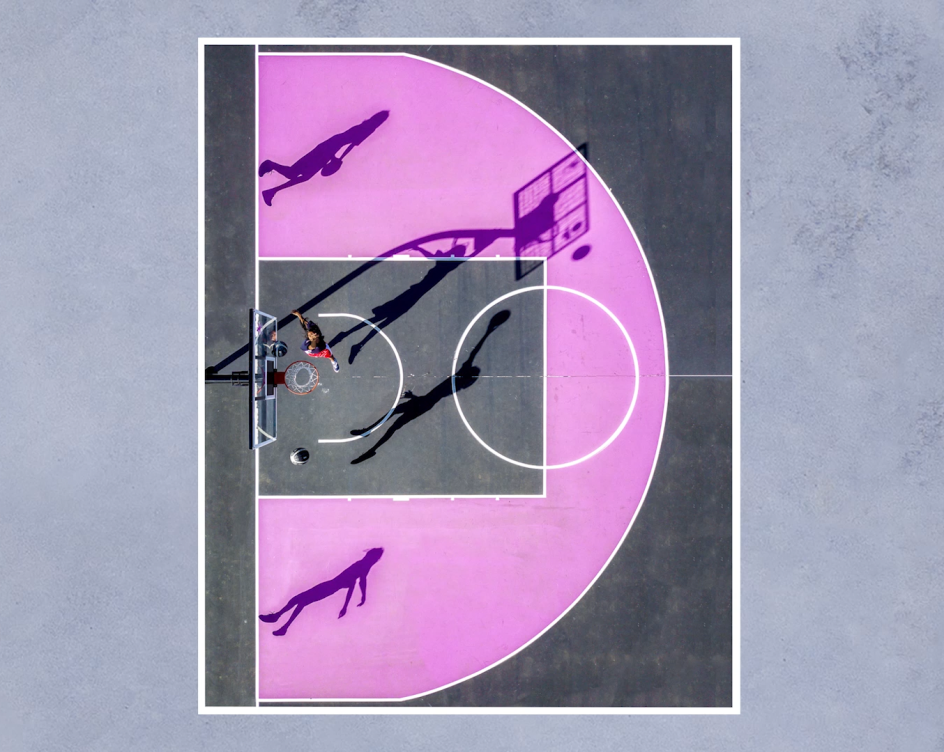 Now he's back with a mixed media animation made in collaboration with Auckland-based aerial photographer Petra Leary. And the theme? Basketball.