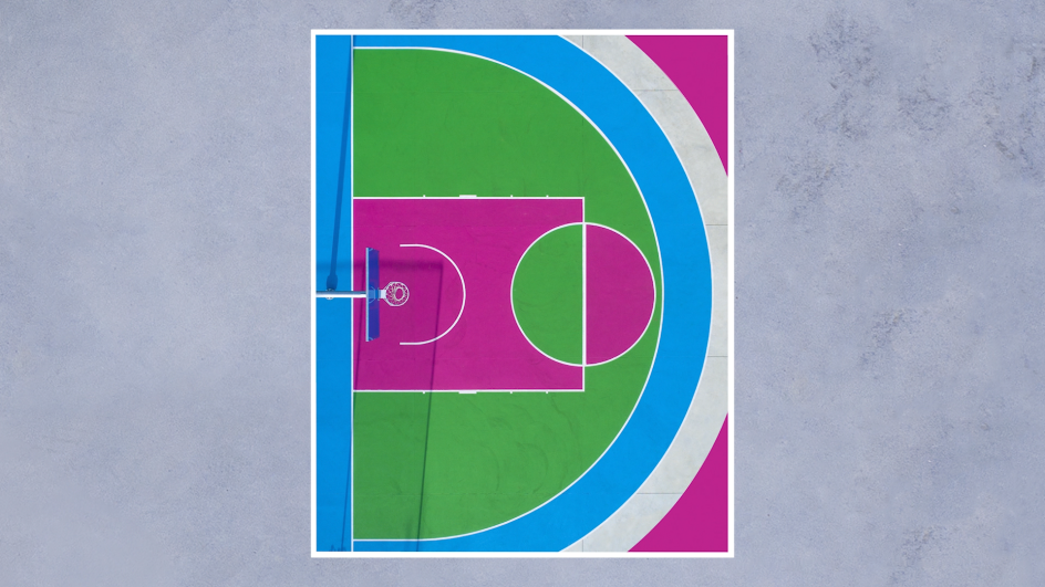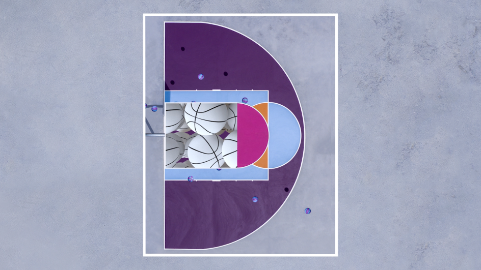 Simply named Courts, the short film brings dozens of Petra's aerial shots of basketball courts to life. "Petra picked out some of the images that she felt would work well with animation. I chose a few of them and pitched a few ideas on what I could maybe do. She was open to me trying different things; adding 3D elements, mixing up different images, playing around really," says Barry.