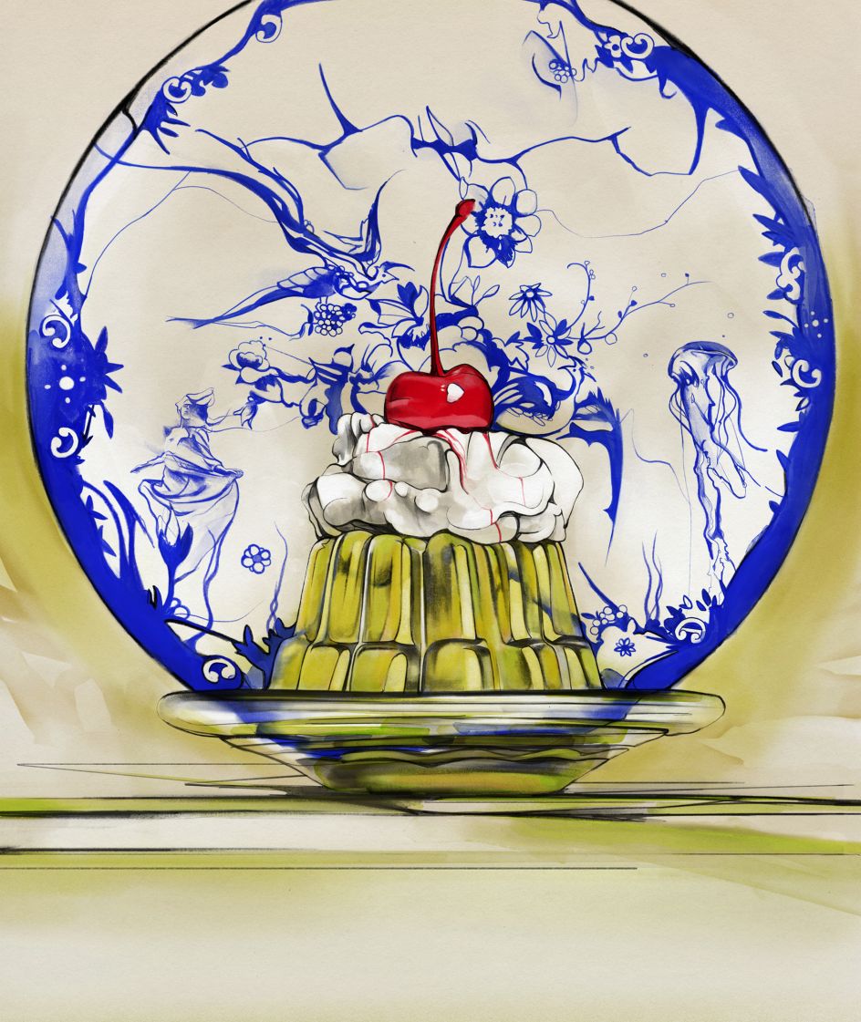 "The scenes kept getting darker. By the time I drew the sponge cake, I was illustrating a death scene from Puccini's La Bohème," he says. "I had a plan going in, but the project kept breaking it, which in the end told me more about the concept than the plan ever did."