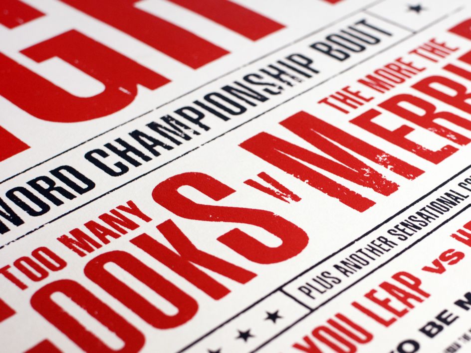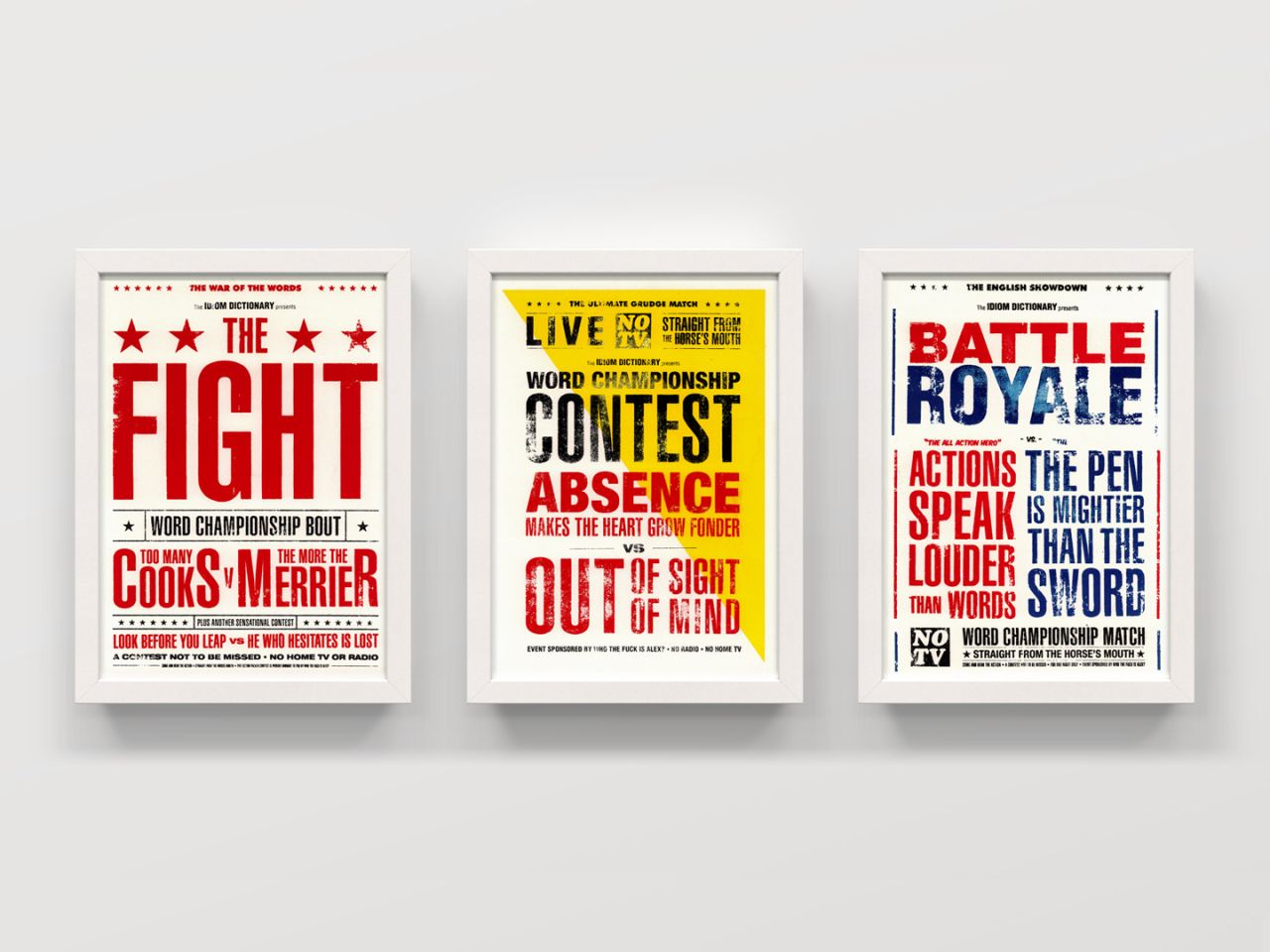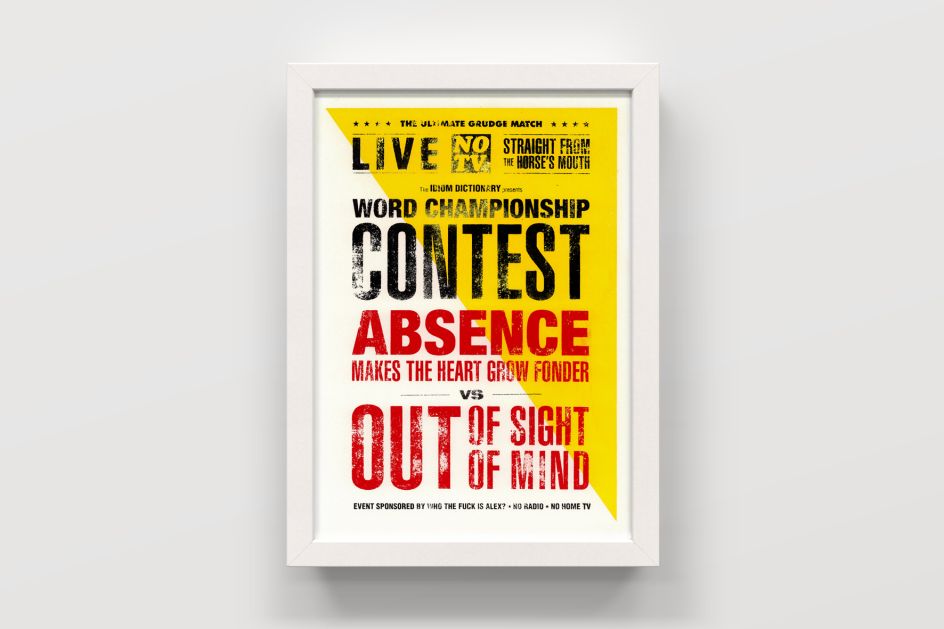 Have you ever wondered who would win if one idiom was pitched against another? In Alex Middleton's latest series, he presents Word Championship Bouts, screen-printed artworks inspired by retro boxing posters.