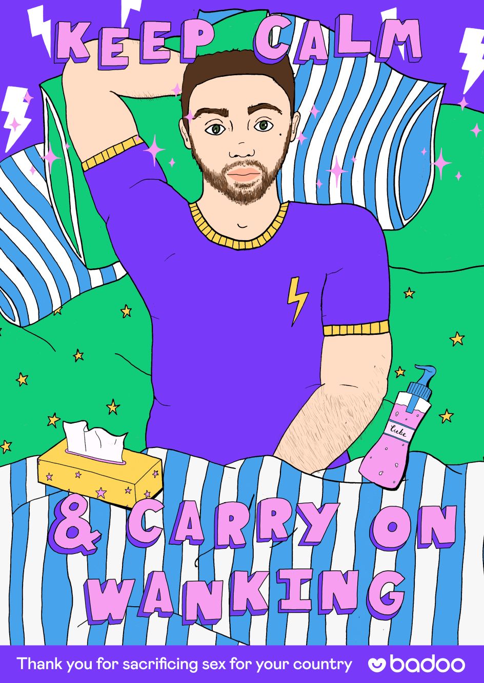British illustrator Alice Skinner has created a cheeky series of wartime-esque posters for dating app Badoo, to celebrate those who've selflessly resisted sex with other households during the Covid-19 pandemic.