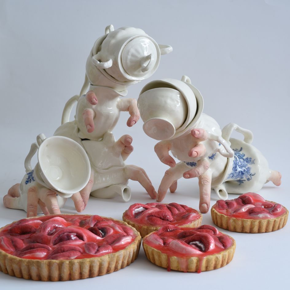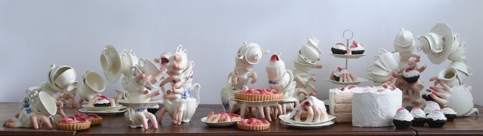On show at Melbourne's Beinart Gallery from 17 October, the series, All Things Sweet & Painful, is a table inhabited by irresistible temptations and even the creepy tea set has human features. On a deeper level, Baranga addresses the complex relationship we have with luxuries, especially with foods: the mix of need and the insatiable hunger for more – more sugar, more attention, more love.