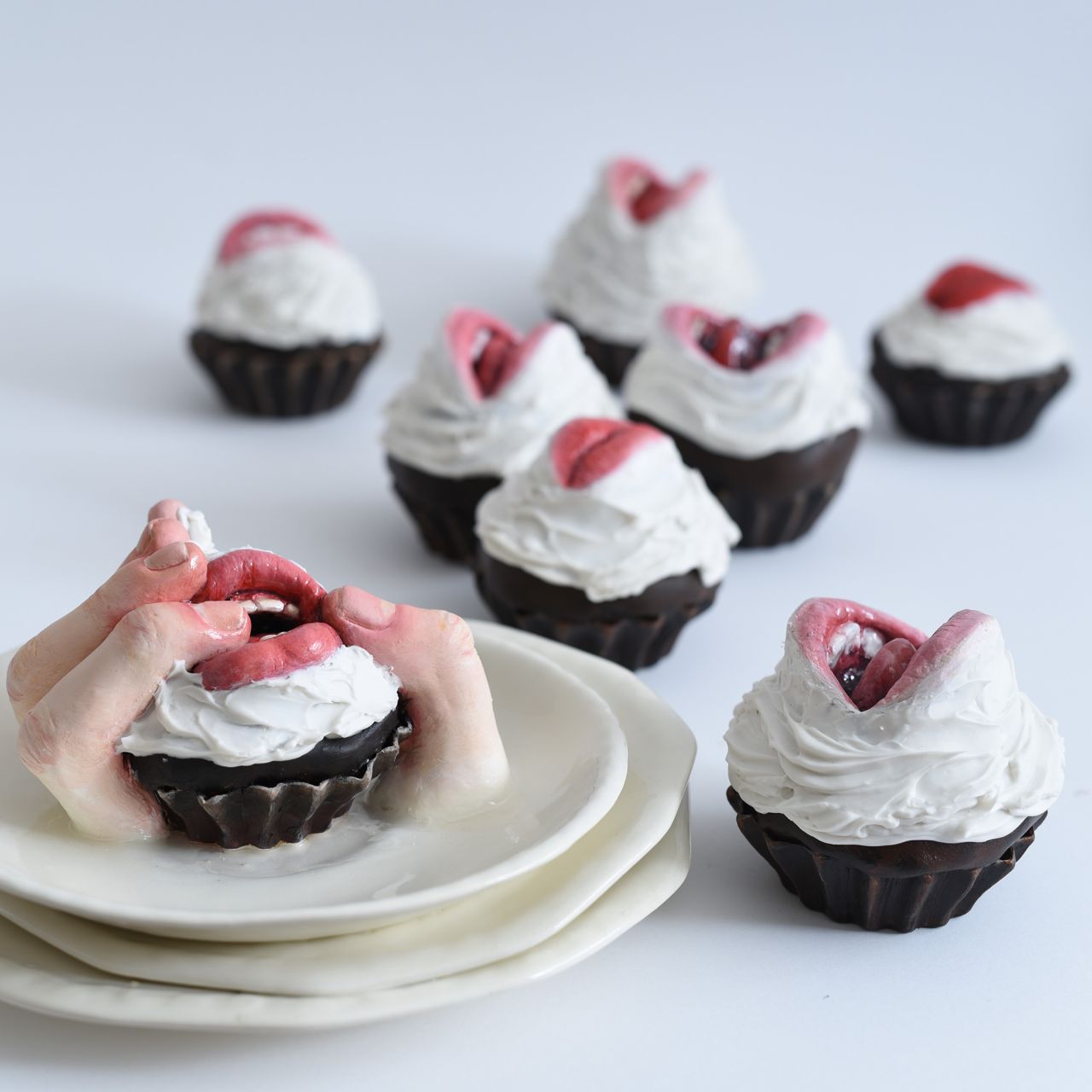 Equally disturbing and terrifying, these life-like sculptures by Ronit Baranga highlight our unhealthy relationship with sugary treats. Each tart or cake has its own mouth, awaiting its chance to bite. But who eats who?