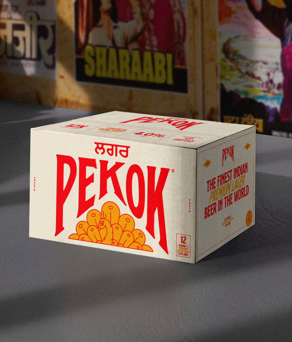 Many clients, however, are closer to home, such as Alphabet's work for Pekok, a new lager from Birmingham's Indian Brewery. "The beer was designed to pair with their Indian street food, so it was important to make the brand stand out in a crowded market while keeping a premium, crafted feel with subtle nods to its Indian heritage," says Mushtaq. Here, the studio navigated the delicate balance between creating a brand that felt contemporary yet connected to cultural roots.