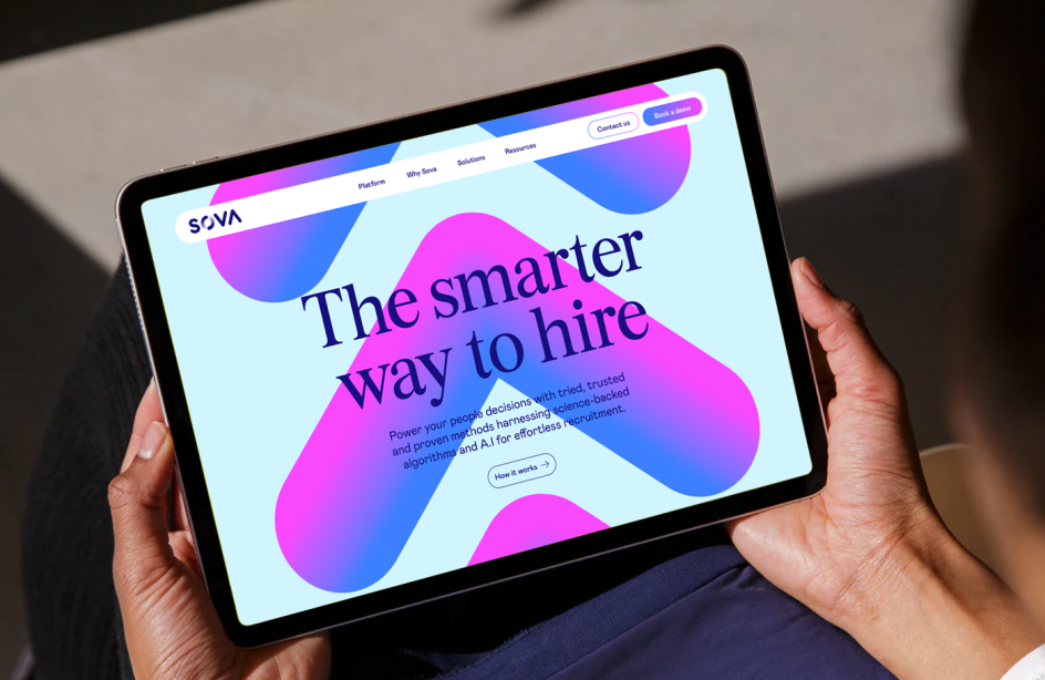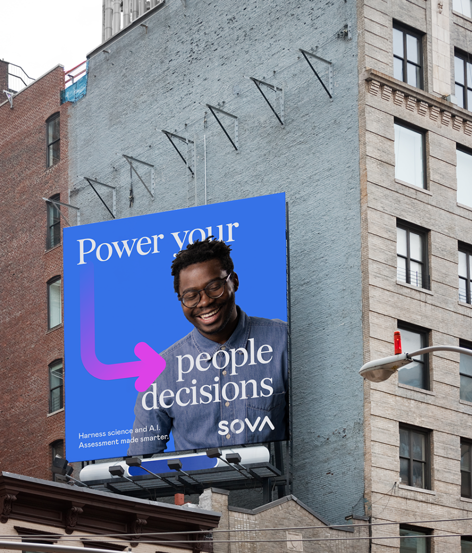 For the latter, AI, Alphabet worked on refreshing the visual identity for Sova Assessment, an AI-driven platform helping companies streamline talent acquisition. The new designs looked to simplify and amplify its message "to clearly convey what makes Sova stand out in a saturated market," Mushtaq explains.