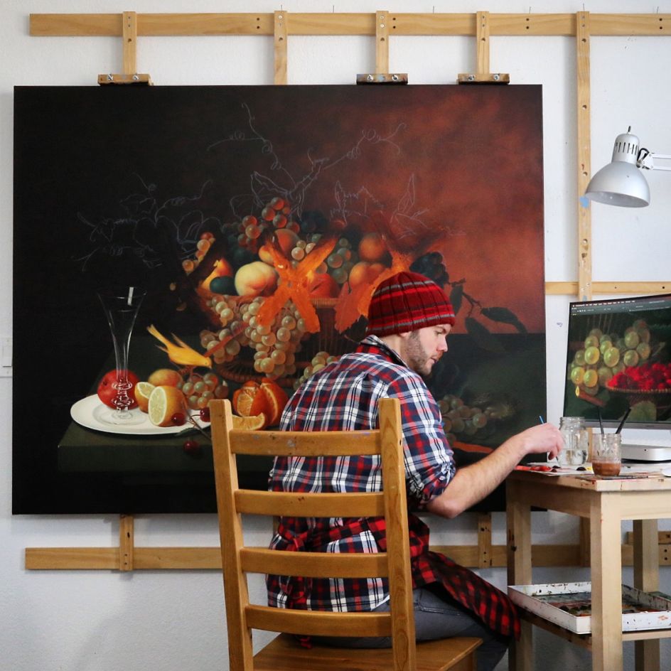 When you initially feast your eyes on Shawn Huckins' work, you assume he has taken digital copies of American classical art and then played around with it in Photoshop. That, however, is definitely not the case.