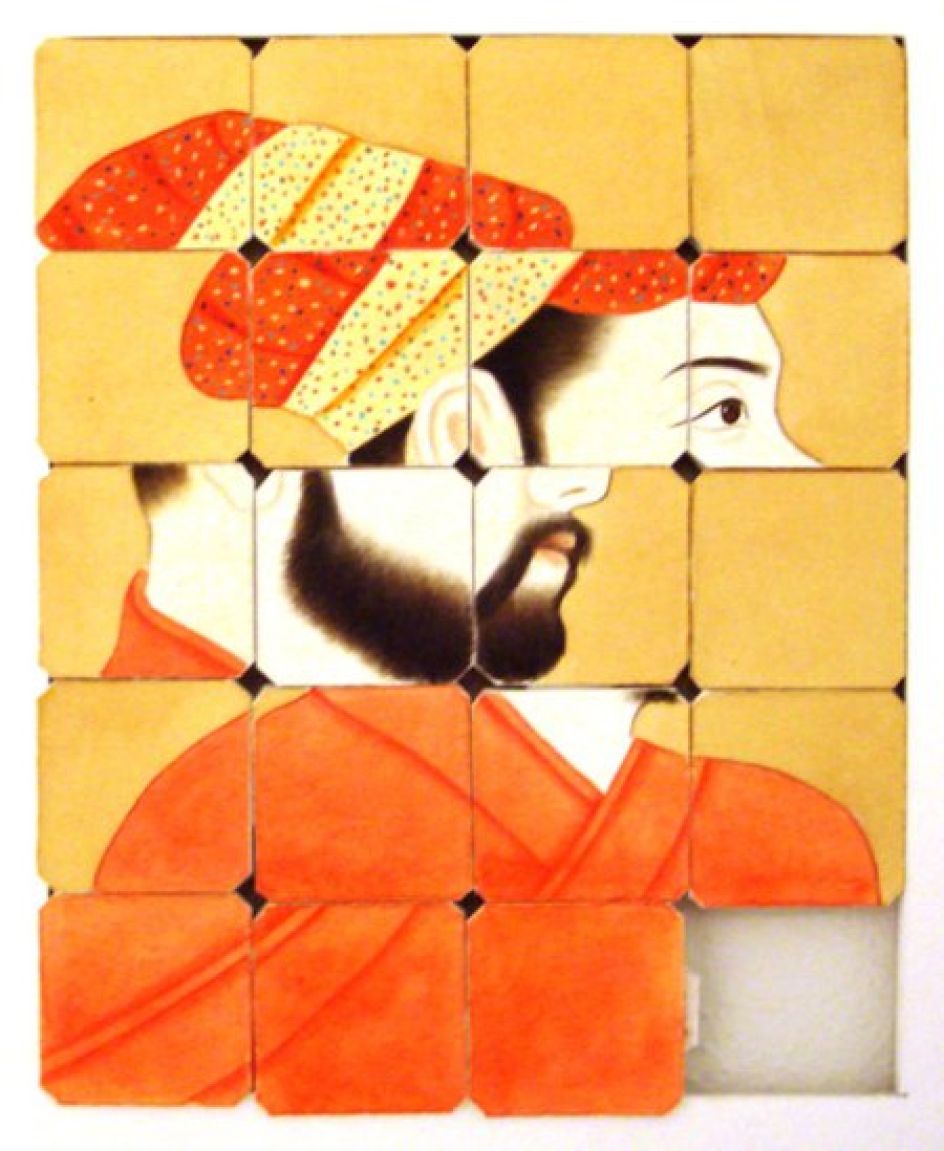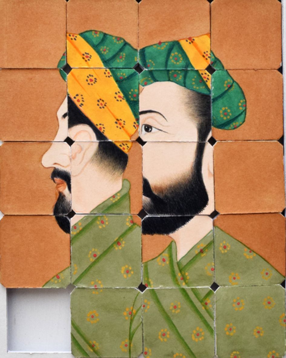 Mughal emperors are still the subject in Amjad's portraits, and he also follows traditional practices by painting on vasli, a type of handmade paper that has long been used as a base for the miniatures that inspired him. This material is made by combining five drawing sheers with dough, dries and becomes hard as wood.