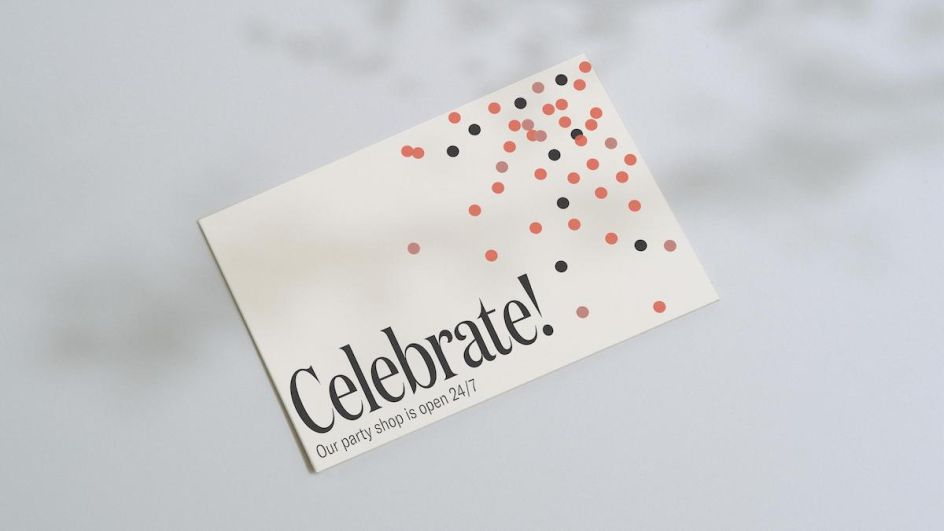 The designs were formed through the designer's efforts to find a visual metaphor that represents both a wedding shop and a party shop and unites the two under one brand. "The circles represent wedding rings and confetti," she explains. "The rings are the only unchanging attribute of weddings across multiple cultures and times, and confetti is a visual representation of fun."