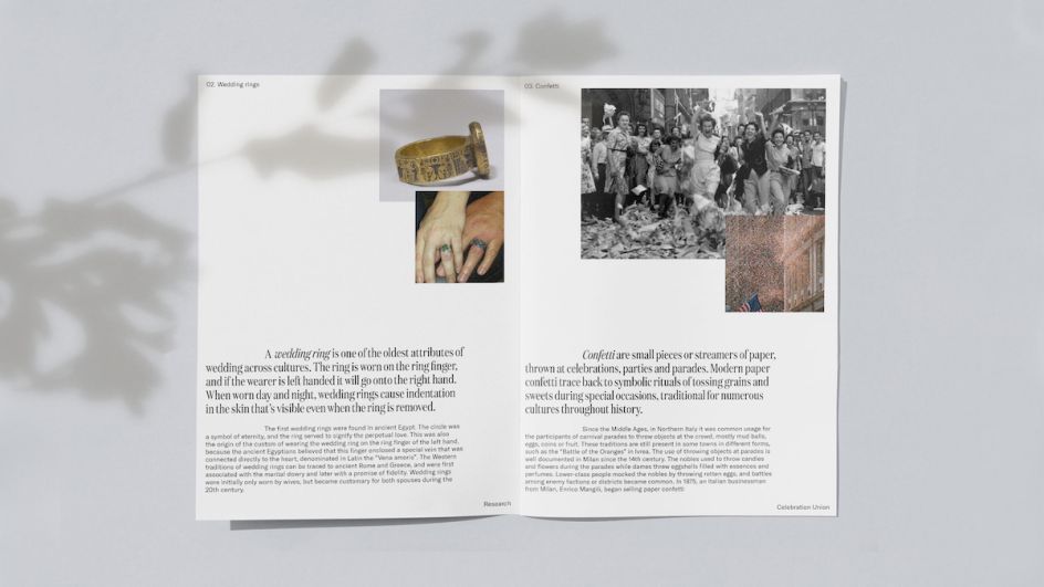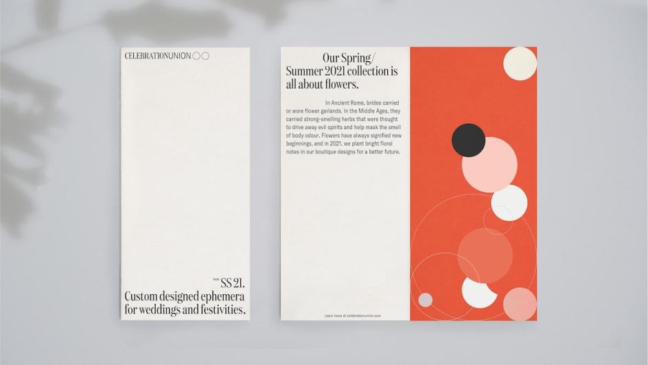 One of her recent standout projects is the identity for New York event design studio Celebration Union. "The visual language is built on research into the history of celebration - weddings, events, gatherings, and parties, to find the essence of what makes our special days special," Andreeva explains.