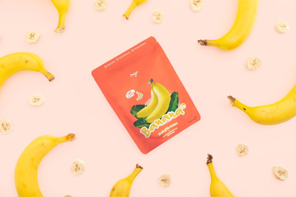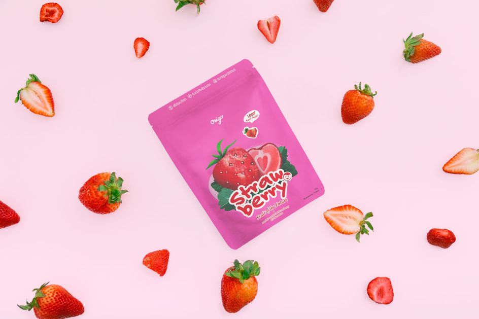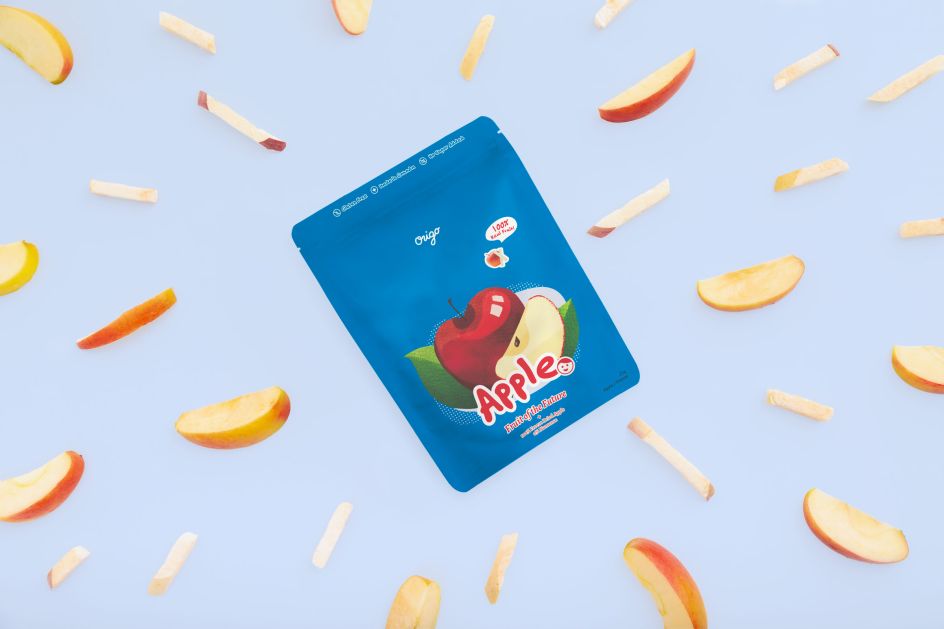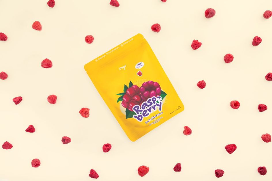 Origo uses super-low temperatures, up to -50°C to remove water, but lets the fruits retain most of their nutrition, shape, and natural colour. Once it has been dried, the fruit tastes crunchy and can be stored at room temperature. As such, Andrew chose an "approachable" direction that would appeal to the target audience.