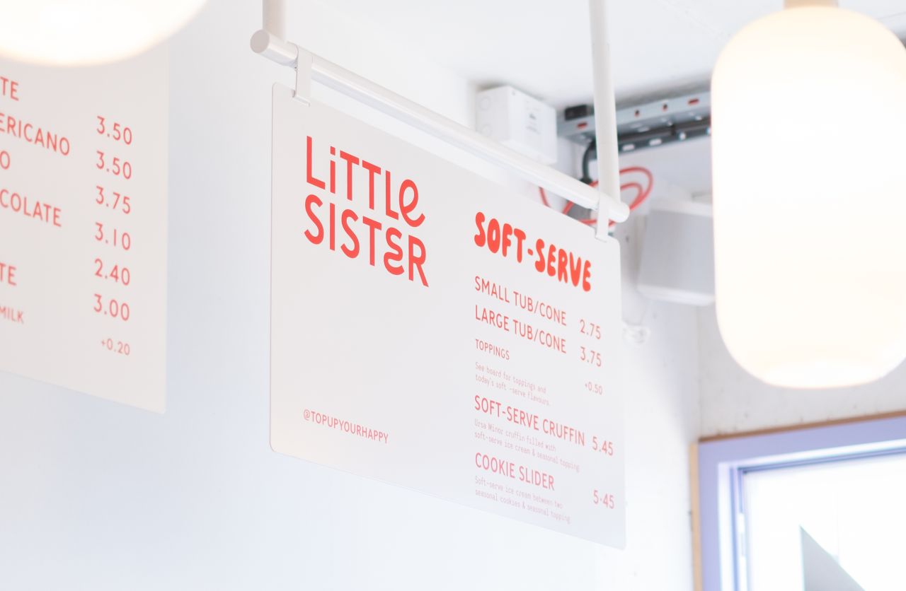The owners of Lost & Found, a brew bar and eatery on the north coast of Ireland, have a long relationship with Belfast-based studio Angel and Anchor. They first partnered with them in their rebrand, which we covered in our news story. And now they've joined forces once more to craft a sister brand, literally called Little Sister: a takeaway hatch serving speciality coffee and soft serve ice cream.